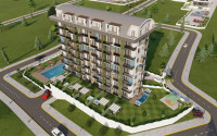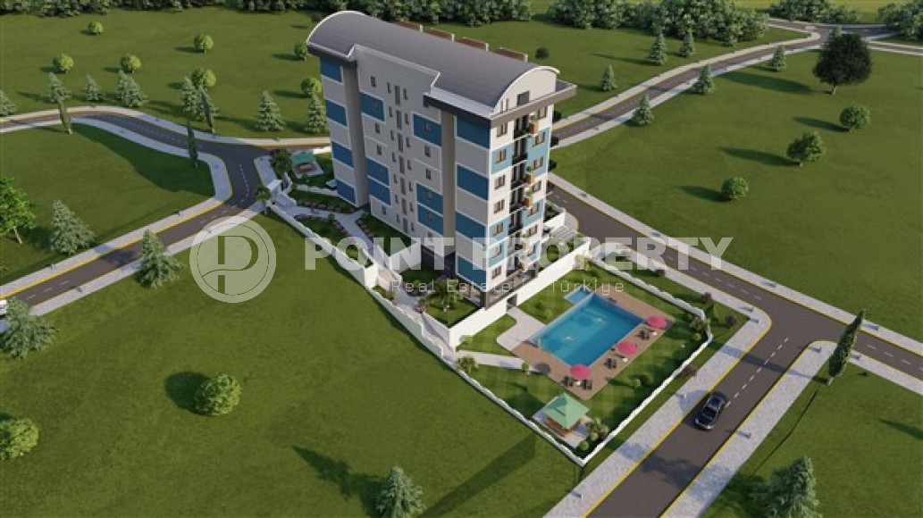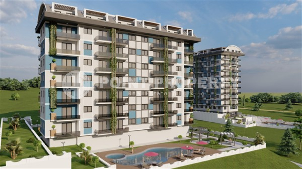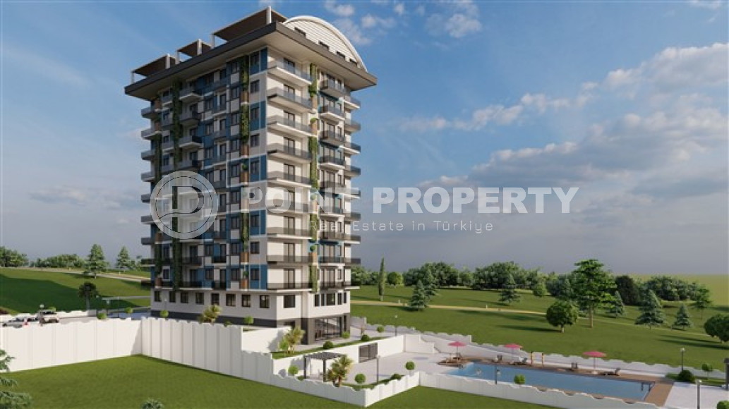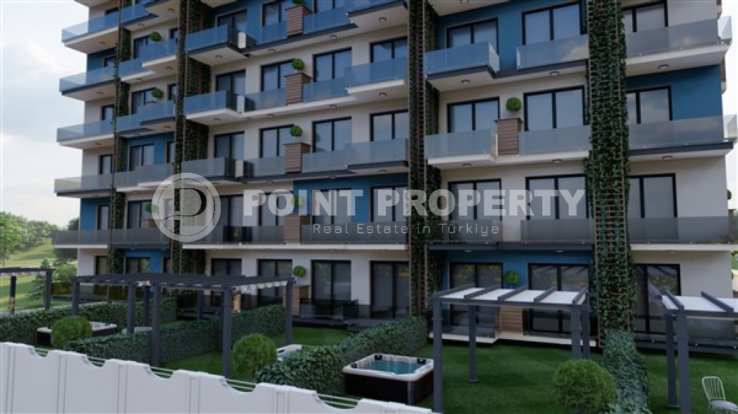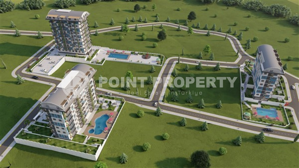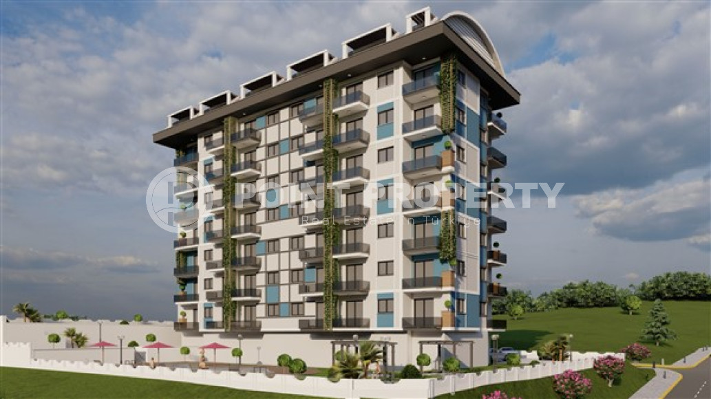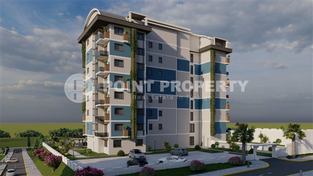 At a distance from the beaches of the Demirtas district, at a distance of two kilometers and one kilometer from its central square, construction of a new luxury complex consisting of three eight-story buildings has begun. The completion date of the work has been determined as 12/30/2024. Without any doubt, the apartments in this residence will be handed over to buyers within the specified period with full finishing, equipped with kitchen units, air conditioners, flooring, windows, and other things necessary for living.