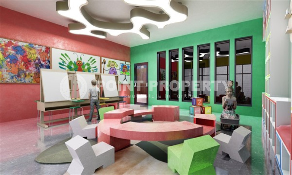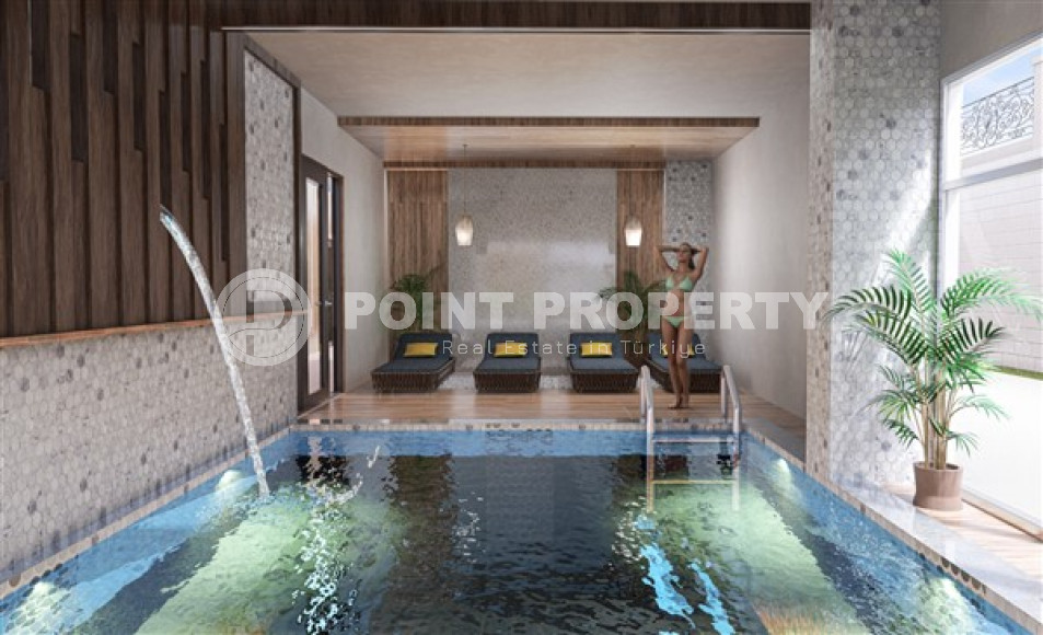 The infrastructure of the complex is standard for Turkish developers — there will be a spa area, a swimming pool, and a fitness center. From atypical entertainment — own cinema, which is something Alanya really lacks. CCTV cameras are installed on the territory of the complex.