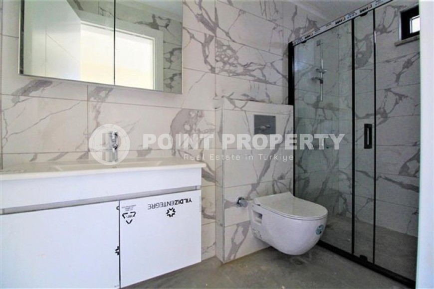1700 meters from the Mediterranean Sea and 1500 meters from the center of Kargicak, the construction of a new residence consisting of two low-rise blocks is being completed. In building "B" on the second floor there is a two-room apartment with a 1+1 layout and a total area of 55 m2. The apartments are sold with a kitchen set already installed by the developer, as well as with a complete renovation. In addition to the standard rooms: living room with kitchen and bedroom, the living space is equipped with a spacious balcony.