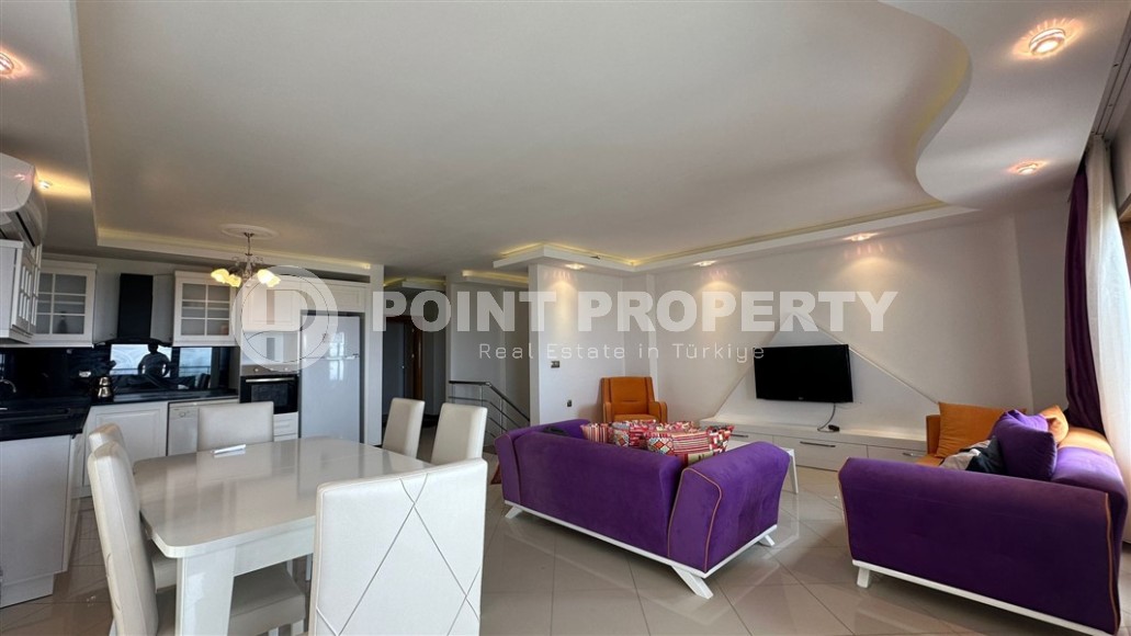 For sale is a two-level apartment with a 3+1 layout, which is located in a complex built in 2009, 3000 m from the beach and the landscaped promenade of the Mahmutlar district. The apartments with a total area of 200 m2 are located on the 1-2 floors of the house and are sold already equipped with furniture and household appliances.