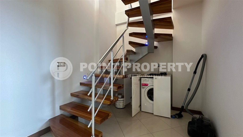 Apartment 1+1 with furniture, located on the first line from the sea and 150 meters from the center of the Kestel district.