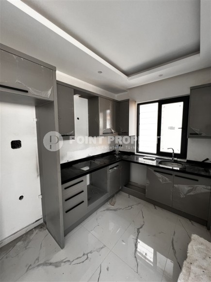 Currently you have an excellent opportunity to purchase a new apartment within walking distance from the city center and the legendary beach, at a reasonable price. Apartment 2+1, with a total area of 107 m2, is located on the 3rd floor in a small residential complex, commissioned in 2023. The modern layout includes a living room combined with a kitchen, two bedrooms, a bathroom and an open balcony. The apartment is for sale with a fine finish, a spacious kitchen unit, with sections for storing food and installing household appliances, a shower cabin and ceramics in the bathroom. It will not be difficult to decorate such apartments in any style you like, and with the professional staff of the after-sales service department of Point Property, the renovation process will be as quick and easy as possible.