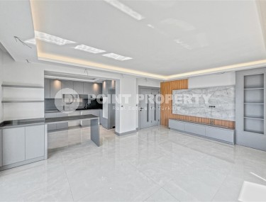 The portfolio of Point Property has been expanded with a spacious apartment with a unique location on the first line from the sea, and a few minutes walk from the center of the prestigious area of Alanya - Kestel. Bright and comfortable, newly renovated, modern furniture and all necessary household appliances, it is perfect for living all year round and for a summer residence. The apartment is located on the 2nd floor in a residential complex built in 2016, its total area is 143 m2, on which there are: a living room combined with a kitchen, two bedrooms, three bathrooms, two of which are equipped with showers, and two open balcony with a magnificent view of the endless sea. The design of the apartment is calm and laconic, with a predominance of white in the interior, which visually makes the rooms more spacious and creates a feeling of lightness and cleanliness. The large living room is successfully divided into two functional areas - a living room, with a massive corner sofa and stylish armchairs in bright red, and a dining area, with a compact wooden table and chairs. The modern black and white kitchen includes a refrigerator, dishwasher and oven. From the kitchen there is access to an open balcony overlooking the sea, where you can organize an additional recreation area - for this, the apartment already has a set of comfortable wicker furniture. The bedrooms and hallway are equipped with spacious mirrored wardrobes. There are no beds in the rooms yet, but the previous owners have already ordered new mattresses, so all you have to do is purchase the missing pieces of furniture and decor to create a cozy atmosphere.