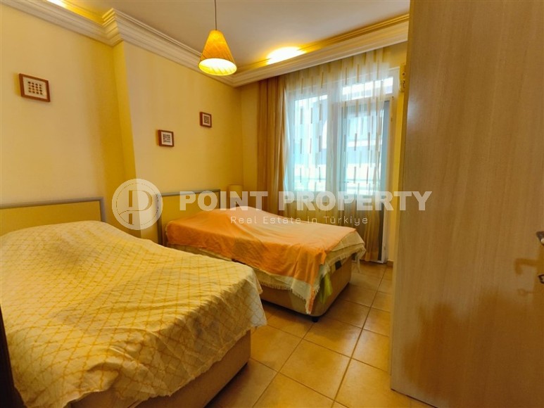 The picturesque, well-kept area of Alanya - Lower Oba is perfect for both summer holidays and year-round living. There are many green parks and squares, well-equipped children's and sports grounds, modern boutiques, large supermarkets, restaurants, beauty salons, schools, private and public clinics. In the center of this comfortable area, in a residential complex built in 2012, three apartments are for sale. They are located on the 1st high and 2nd floors. The total area of each is 110 m2, the layout includes a living room combined with a kitchen, two bedrooms, two bathrooms and three open balconies. All apartments are fully equipped with furniture and household appliances, as can be seen in the photo. The living rooms are equipped with soft sofas, coffee tables, cabinets and dining tables; in the bedrooms there are comfortable beds, sets and wardrobes; and the kitchens are equipped with refrigerators, washing machines and ovens.