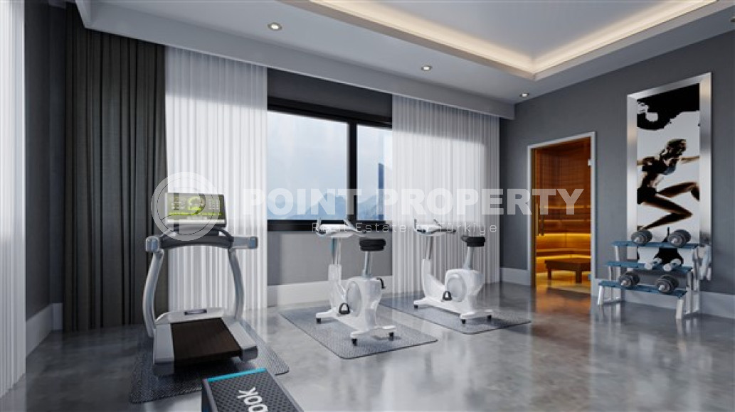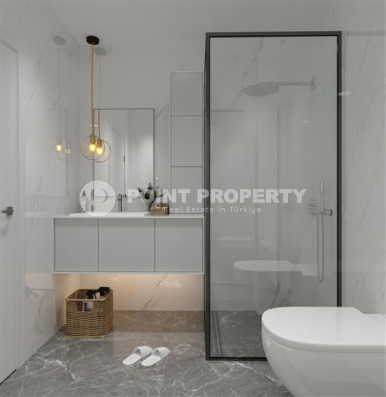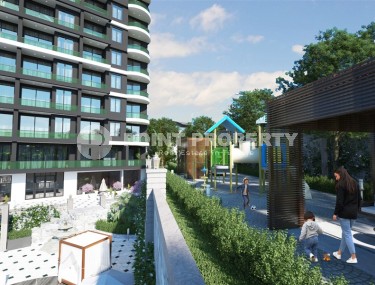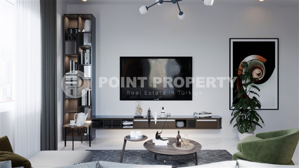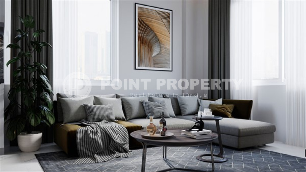 1+1, 2+1 duplex with garden, 2+1 duplex penthouse, which will be rented with ready renovation: ceramic-granite flooring, double glazing, interior doors, kitchen units with granite countertops, fully equipped bathrooms with plumbing and frame furniture, connections for electrical communications.