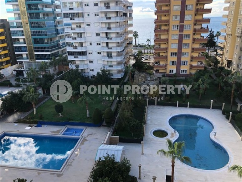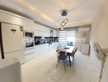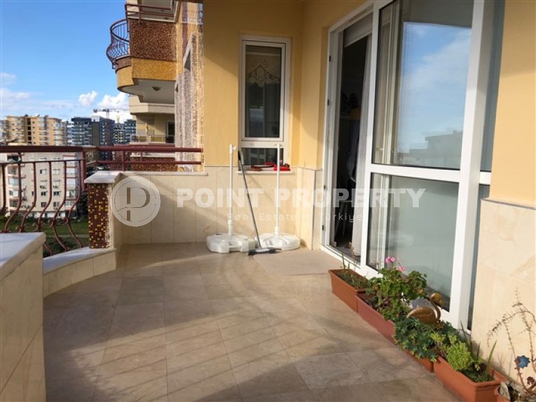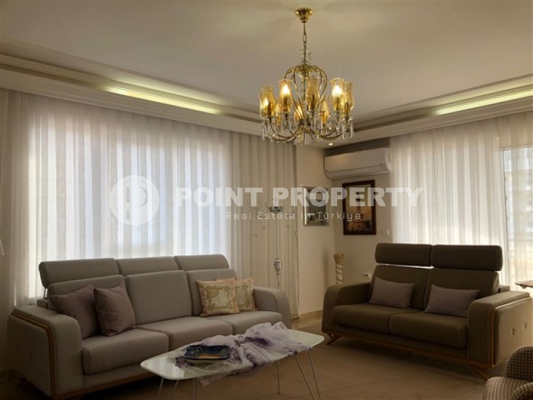 If you are looking for an apartment for permanent residence, or for a holiday period, on the Mediterranean coast. We have what you are looking for. Point Property company presents to your attention a 2+1 apartment with a total area of 140 m2, located on the 6th floor of a residential complex built in 2008, in the most rapidly developing area of Alanya - Mahmutlar. The layout of the apartment includes: a separate kitchen, a living room, two bedrooms, two bathrooms and two balconies. The kitchen has built-in furniture with a sufficient number of storage compartments, a large work surface, household appliances, and a dining table. The salon is equipped with furniture for a comfortable pastime; there are two comfortable, soft sofas, armchairs, a coffee table, a TV, a modern wall, decorative interior items, air conditioning, panoramic windows and compartment doors framed by light curtains. From the salon there is access to a balcony overlooking the Mediterranean Sea. The bedrooms are equipped with the necessary set of furniture: comfortable beds, bedside tables, air conditioners. One of the bedrooms has access to a balcony. The bathrooms are equipped with showers, the necessary furniture, ceramic walls and floors.