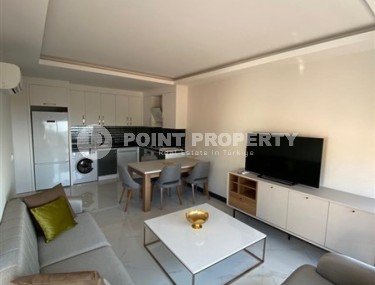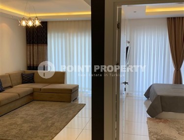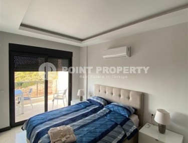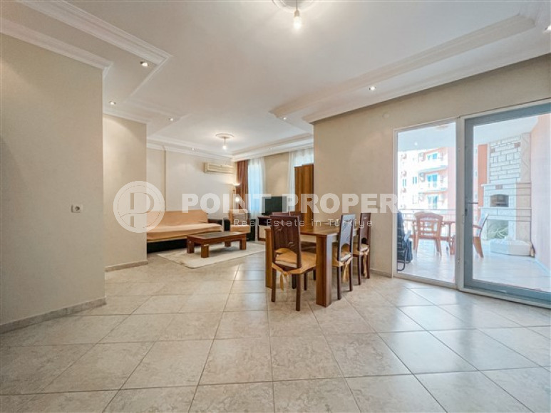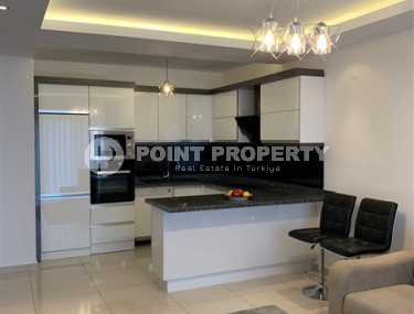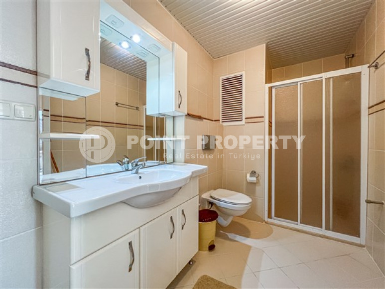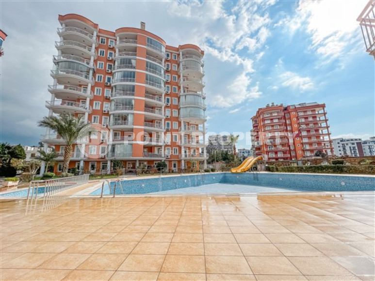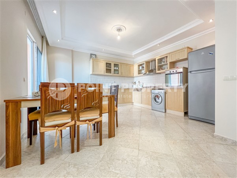 Once you own an apartment in this corner of Alanya, you will see how different it is from the noisy tourist areas. The offered 2+1 apartments are located on the 1st floor of the building, which is part of a residential complex with its own infrastructure. The layout of the apartment, with a total area of 120 m2 – living room combined with kitchen, two bedrooms, two bathrooms and two balconies. Warm light colors in the interior and zoning of space visually make the apartments even more spacious. The apartment has everything for a comfortable life – good quality furniture, necessary household appliances, air conditioners. Thanks to the laconic interior, it will be easy for new owners to realize their design ideas and introduce original decorative elements.
