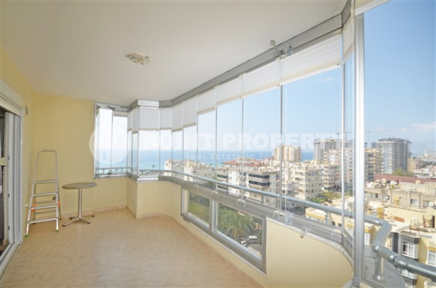 In turn, our real estate agency Point Property offers you an excellent option for purchasing an apartment in the Mahmutlar area. Judge for yourself! A spacious three-room apartment with a 2+1 layout, which, in addition to classic rooms, also includes two balconies, is located on the ninth floor of a house built in 2010. The apartments have a total living area of 125 m2 and are sold by the owner with a full set of furniture. Here we can see a spacious living room, separated from the kitchen area, with a small dining table nestled compactly in a recess in the wall. From the living room seating area you can access large glazed balconies. The bedrooms are equipped with beds and wardrobes. One of them is intended for a child and is equipped with a desk and chair.