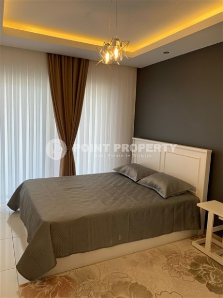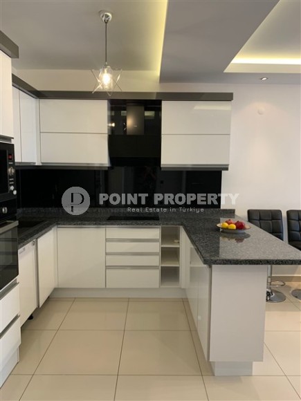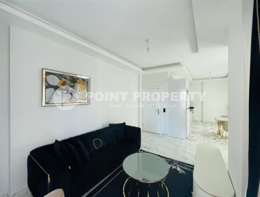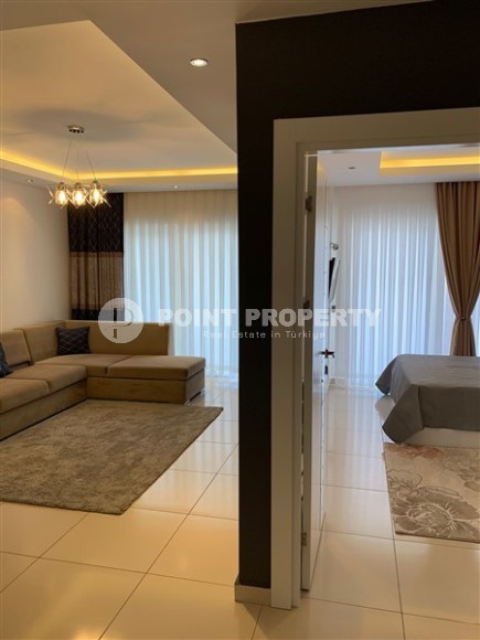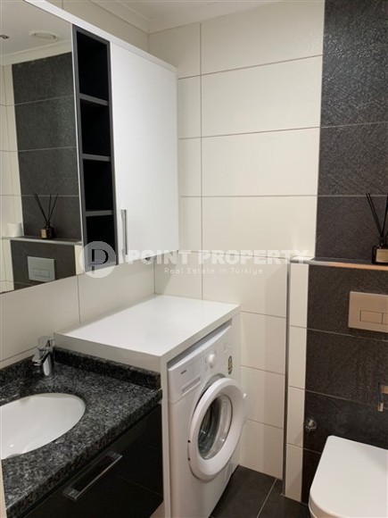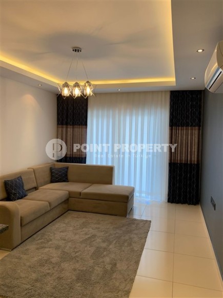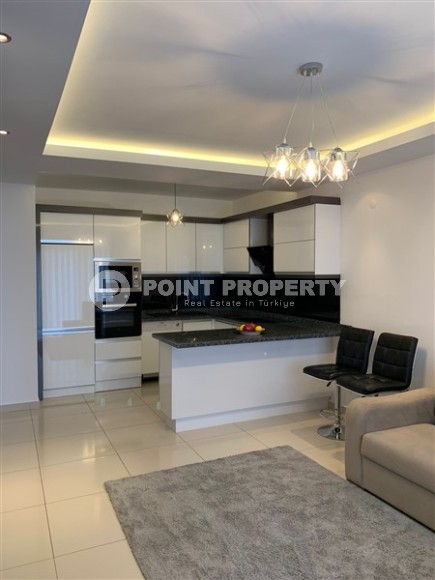 A ready-to-move-in apartment by the sea is an excellent alternative to hotel rooms and a profitable investment in real estate. This is exactly the option presented in this section - apartment 1+1, with a total area of 60 m2, on the 2nd floor in a complex built in 2016 in the center of the Tosmur district. The layout of the apartment consists of an American kitchen combined with a living room, a bedroom, a bathroom equipped with a shower and a washing machine, and an open balcony overlooking the residence’s courtyard and the pool. Bright, with a minimalist design, the apartment is equipped with modern furniture (corner sofa, chairs, large bed and spacious wardrobe) and the latest household appliances.