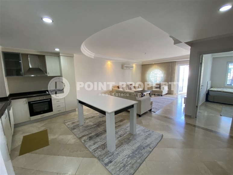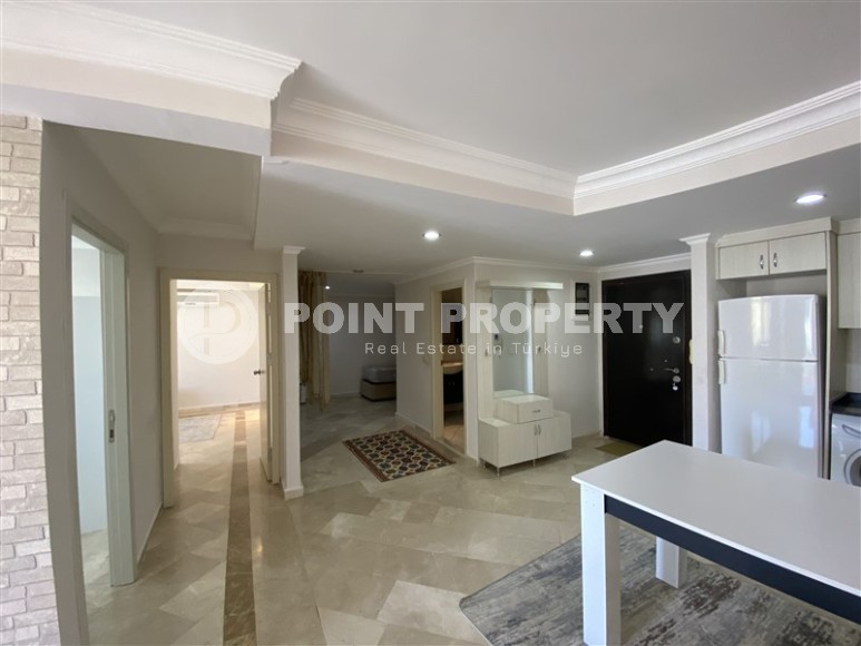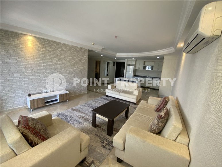 Point Property's portfolio has been expanded with a comfortable, ready-to-move-in apartment with an excellent location within walking distance from the sea and the center of Alanya's popular Mahmutlar district. Spacious, with a total area of 108 m2, it is located on the 10th floor in a modern residential complex built in 2016. The layout of the 2+1 apartment consists of a living room combined with a kitchen, two bedrooms, a bathroom equipped with a shower and an open balcony with panoramic views of the city. The apartment is bright and cozy, with a predominance of white in the interior and a minimum of bright accents, which allows the new owners to easily give it their own style and originality with the help of paintings and decorative items. The spacious living room is visually divided into two functional areas - a living room, with soft sofas, an armchair, a coffee table and a side table; and a kitchen, with a dining table and a suite equipped with a refrigerator, washing machine, dishwasher, touch surface and oven. The bedrooms are equipped with large beds, bedside tables and a wardrobe, and on the balcony there is a comfortable seating area with practical garden furniture.