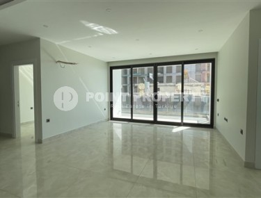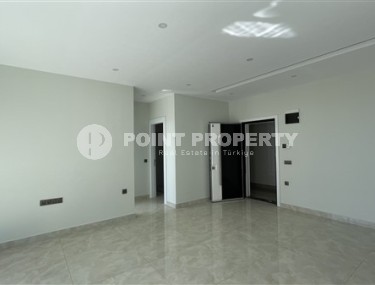 In this section we present to your attention an apartment that will surely appeal to lovers of modern designs and stylish, laconic interiors. It is located within walking distance from the center of Alanya, on the 6th floor in a building built in 2007. The layout of the apartment, with a total area of 105 m2, has an open kitchen combined with a living room, two bedrooms, two bathrooms, and two balconies with panoramic views of the city. The apartment has a good quality renovation, modern furniture and all necessary household appliances are installed. The design harmoniously combines white and noble gray colors, and original multi-level lighting and stylish pieces of furniture and decor give the apartment luster and individuality. The living room is visually divided into a lounge, with a soft sofa, bright armchairs and a coffee table; and a kitchen area, with a dining table and a fashionable suite equipped with a refrigerator, dishwasher, touch surface and oven. From the living room there is access to a spacious glazed balcony, where a comfortable recreational area is organized, with comfortable sun loungers and wicker garden furniture. The bedrooms are equipped with beds and spacious wardrobes, and at the entrance there is an additional small wardrobe for shoes and outerwear.