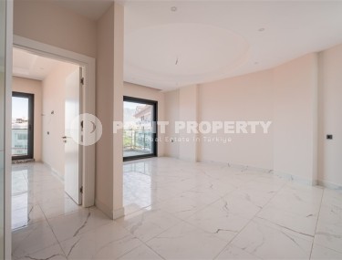This section presents an apartment whose many advantages include: new high-quality renovation, modern design, comfortable furniture and all necessary household appliances, as well as a convenient location within walking distance from sea and center of Alanya. It is located on the 5th floor in a building built in 2004 and has a total area of 100 m2. The 2+1 apartment layout includes a separate kitchen, living room, two bedrooms, two bathrooms equipped with showers and an open balcony overlooking the city and green mountain peaks. The design of the apartment is stylish and modern, with a monochrome range of calm shades in the interior, soft spot lighting, and tastefully selected decorative items. The cozy living room is equipped with comfortable sofas, an armchair, a functional set with plenty of sections for storing things, and a dining table with soft chairs. The compact kitchen is equipped with a refrigerator, gas stove and oven. The bedrooms have comfortable beds, bedside tables and spacious wardrobes, and the bright children's room has a work area with two desks.