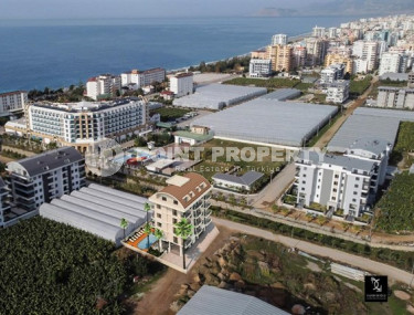 The building in which this apartment is located is located within walking distance from the center of Alanya, where, along with the usual supermarkets, clothing stores, cafes, bank branches and public transport stops, there are modern fitness clubs, beauty salons, restaurants for every taste, children's educational institutions and everything you need for a comfortable life all year round. Just 650 meters from the apartments there is a luxurious sandy beach, with crystal clear water and a landscaped promenade, with children's and sports grounds, benches, gazebos and a picturesque alley of palm trees.