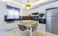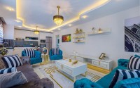 We present to your attention a spacious, comfortable apartment, with good quality renovation, modern furniture and household appliances, which is perfect for a large family, and given its location a few minutes walk from the sea , can be used as a summer residence for vacations. The apartment, with a total area of 150 m2, is located on the 4th floor in a residential complex built in 2015, and consists of a living room combined with a kitchen, three bedrooms, two bathrooms equipped with showers, and two panoramic open balconies with views on the green slopes of the Taurus Mountains. The design of the apartment is calm and laconic, with a predominance of white in the interior, which creates a feeling of space and cleanliness. A bright accent in the interior of the living room are soft sofas and armchairs in sea green color, and heavy curtains matched to match, which look harmonious with the original snow-white set, with gold elements, and a stylish chandelier. Closer to the modern kitchenette, equipped with a refrigerator, washing machine, dishwasher and oven, there is a small dining table with chairs. The spacious bedrooms are equipped with comfortable beds and bedside tables, and at the entrance there is a spacious wardrobe for shoes and outerwear.