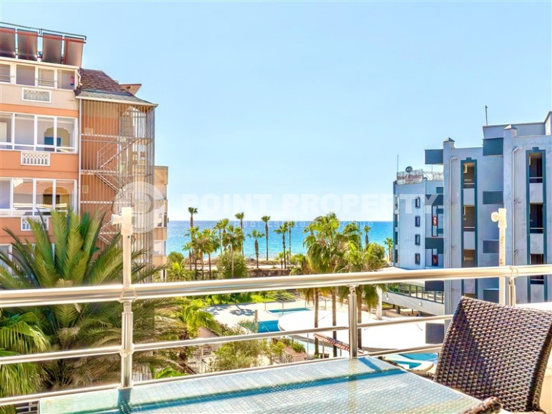 This section presents a comfortable apartment that is perfect both for your own living and for successful rental. Compact, with a total area of 55 m2, it consists of an American kitchen combined with a living room, a bedroom, a bathroom equipped with a shower and an open balcony overlooking the sea. The apartment is equipped with all the necessary furniture and household appliances - the living room has a massive sofa, an armchair, a sideboard, a coffee table and a dining table, the bedroom has a soft bed, bedside tables and a wardrobe. The kitchen is equipped with a small refrigerator and hob, and on the balcony there is a seating area with practical garden furniture.