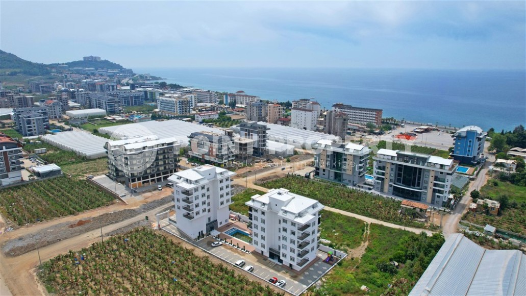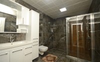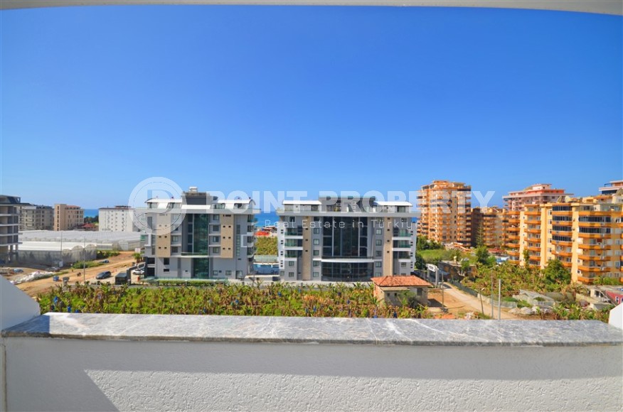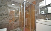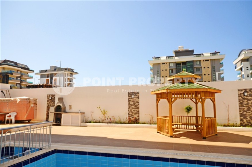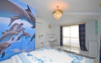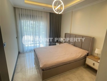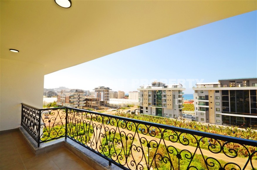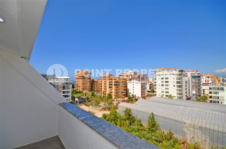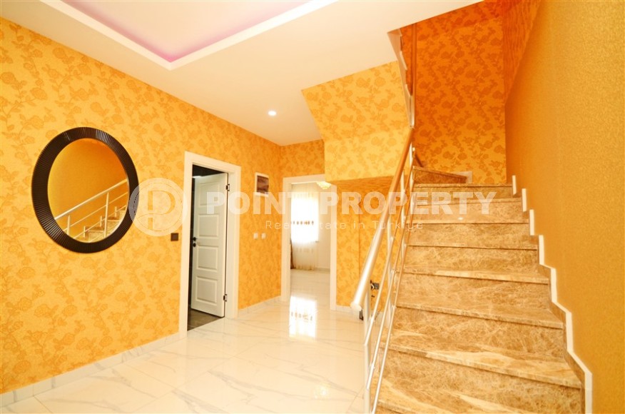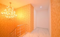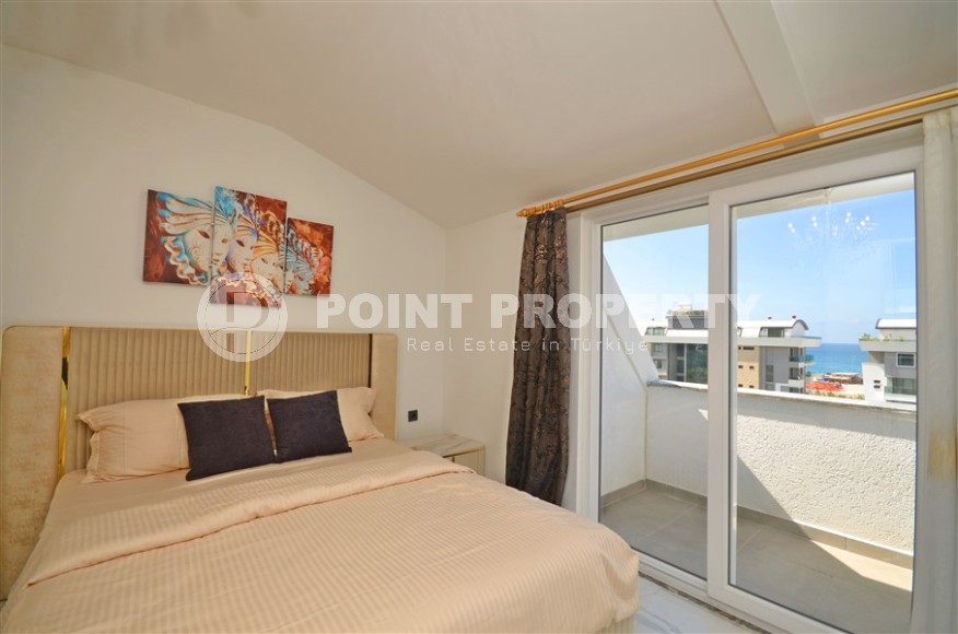 This section presents a comfortable apartment that is perfect for both summer holidays and permanent residence. It is located within walking distance from the sea and the center of the prestigious area of Alanya - Kargicak, on the 5th floor with an attic in a residential complex built in 2022. The layout of the duplex, with a total area of 170 m2, includes an open kitchen combined with a living room, three bedrooms, three bathrooms equipped with showers, two balconies and a spacious terrace overlooking the banana grove, the city and the sea. The apartment has been renovated to a high standard, stylish furniture and the latest household appliances have been installed. A cozy living room, with amber-colored wallpaper and a massive chandelier, is equipped with soft sofas, armchairs, a coffee table and a side table. The functional corner kitchen is equipped with a refrigerator, washing machine, dishwasher, hob and oven. The bedrooms, with original prints on the walls, have large beds and modern fittings, so new owners do not have to worry about furnishing the apartment.