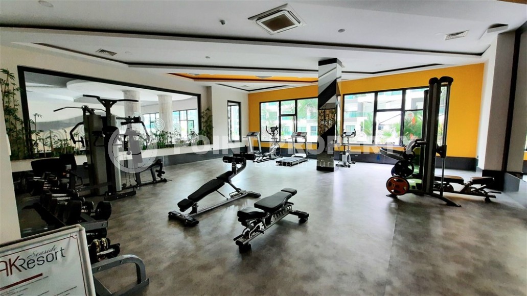 The internal infrastructure of the complex in which the apartment is located is organized according to the “city within a city” type, where everything is provided for safety and maximum comfort. On the territory of the residence there is a spacious green garden, with a children's park and picnic area, with barbecue facilities and landscaped recreation areas. Residents in the complex are equipped with: outdoor, indoor and children's swimming pools, a water park, a basketball court, a cinema, a bowling alley, a games room with billiards and a tennis table, a cafe, a bar and a restaurant. For sports lovers, the residence has a health center with a fitness club, sauna, hammam and jacuzzi, and underground and outdoor parking are provided for car owners. A distinctive feature of this residential complex is the presence of its own beach, which is only 300 meters away.