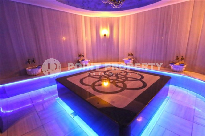 The apartments are located in a residential complex built in 2020, where everything is provided for comfort and safety. Residents have access to an outdoor swimming pool with a water slide and a bar, an indoor swimming pool, a fitness club, a sauna, a hammam, a jacuzzi, a modern spa salon, a children's and sports grounds, a games room, a small green garden and underground parking. The complex is under 24-hour security and equipped with a modern video surveillance system, as well as a separate generator for rare cases of power outages.