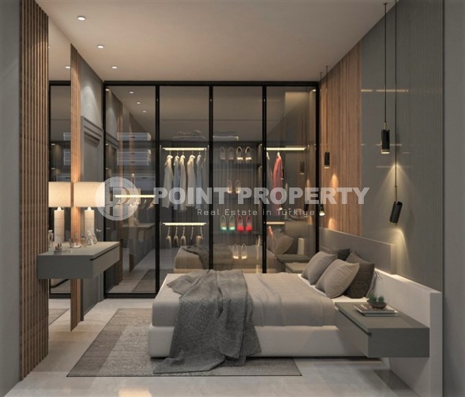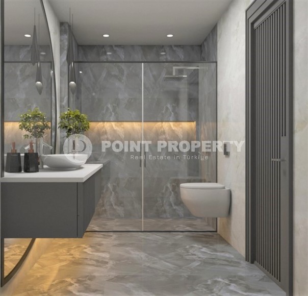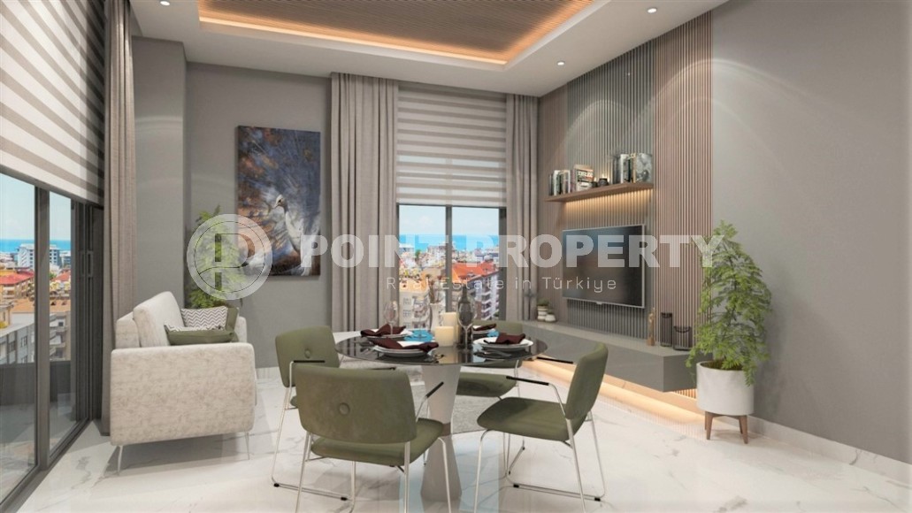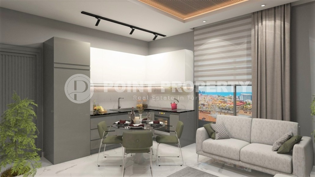 We present to your attention an apartment with a top location in the very center of the popular Mediterranean resort of Alanya and a short walk from the luxurious sandy beach. Compact, with a total area of 50 m2, it is located on the 4th floor in a premium residential complex, commissioned in 2023. The apartment layout includes a living room combined with a kitchen, a bedroom, a bathroom and an open balcony. All finishing work has already been completed in the apartment - suspended ceilings with spot lighting, flooring, kitchen units and high-quality plumbing have been installed. Our professional after-sales service team will help you decorate the design in any style you like (one of the options is shown in the photo), order furniture and appliances, organize the connection of communications and solve all everyday issues.