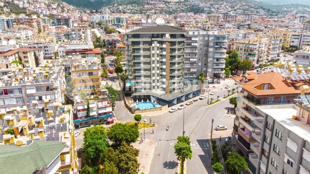The location of the complex is very good - just a few minutes walk away is the center of Alanya, with all the social infrastructure necessary for everyday life; and the apartments are only 650 meters away from a well-maintained sandy beach and a spacious promenade, with bicycle paths, children's and sports grounds, benches and gazebos.