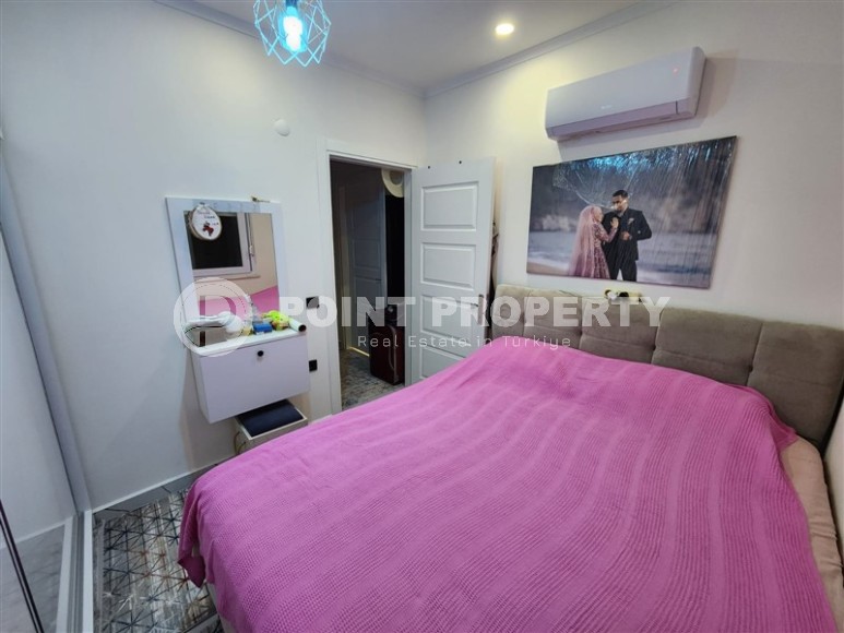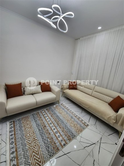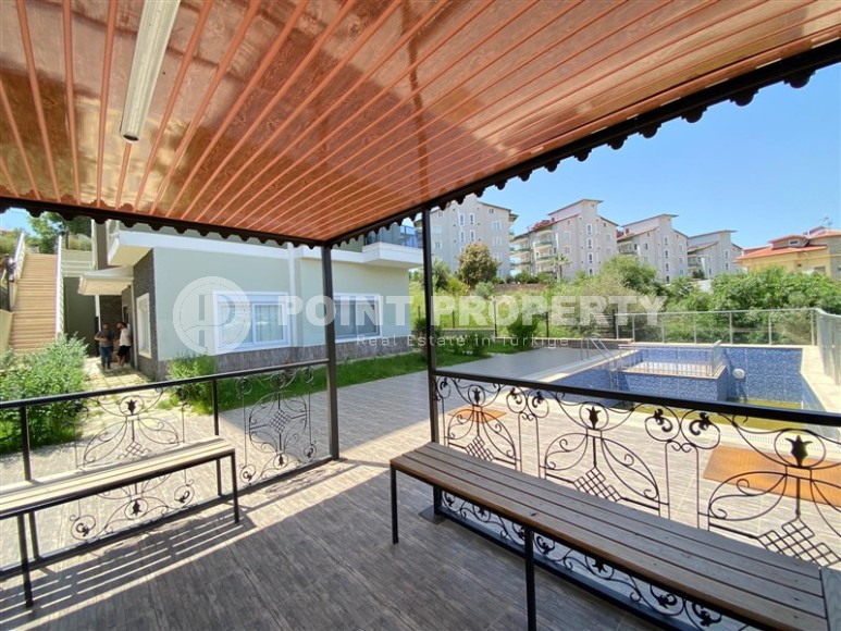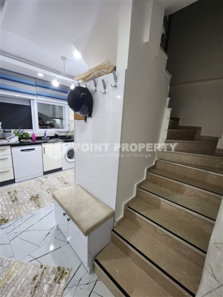 The picturesque Upper Oba region of Alanya, surrounded by the Taurus Mountains, is a quiet corner of paradise, reminiscent of a cozy European town. Well-groomed streets, landscaped park areas, children's and sports grounds, attractive low-rise buildings - everything here is created for harmony with nature and a comfortable, measured life. In one of the new quarters of the Oba district, in a residence 2020 a compact two-level apartment 2+1, with a total area of 65 m2, is available for sale become your summer residence or apartment for permanent residence. The duplex layout includes a living room combined with a kitchen, two bedrooms, two bathrooms equipped with showers, a balcony and an open terrace overlooking the city and mountain peaks. The design of the rooms is restrained and laconic, with a pleasant, light interior. Since the apartment is offered unfurnished, with a kitchen unit, plumbing and air conditioning, new owners will have an excellent opportunity to customize the design to their taste, and our experienced after-sales service department staff will help you do this.