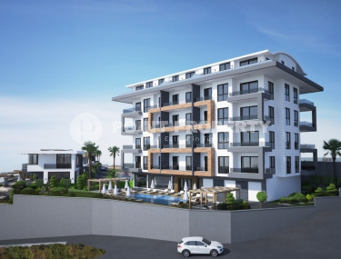 Cozy 101 m² apartment in a large complex with a hotel in the Kargicak area with a view of the mountains and the sea