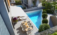 Connoisseurs of new technologies and an individual approach to construction will certainly appreciate the villas presented in this section. The complex has seven 4-storey 4+1 mansions, the total area of each is from 320 m2, the layout includes an American kitchen combined with a living room, four bedrooms, one of which, on the ground floor, can be used as an additional lounge room, four bathrooms and three spacious open balconies. The base area of the house is 60 m2, terraces and balconies are 115 m2. The finishing touches include insulated walls, triple glazed windows, air conditioning systems, video surveillance and automatic garden watering. Owners will be able to change the electrical and water supply plan, install an elevator, electric generator, smart home systems, floor and pool heating, as well as choose the color and model of finishing materials.