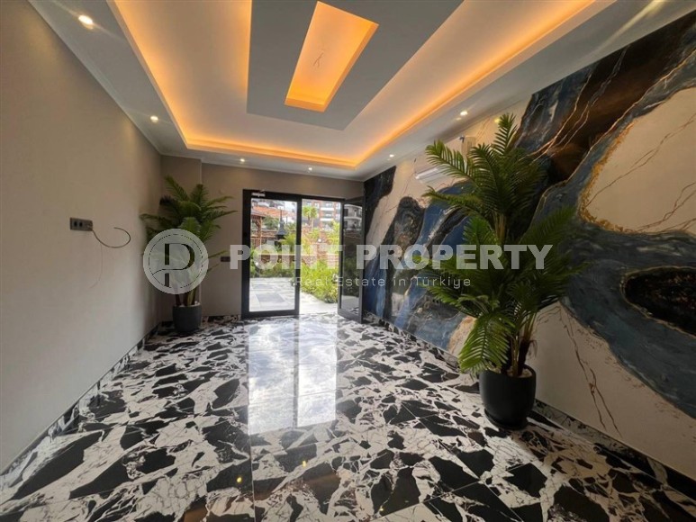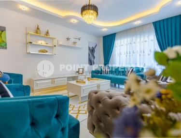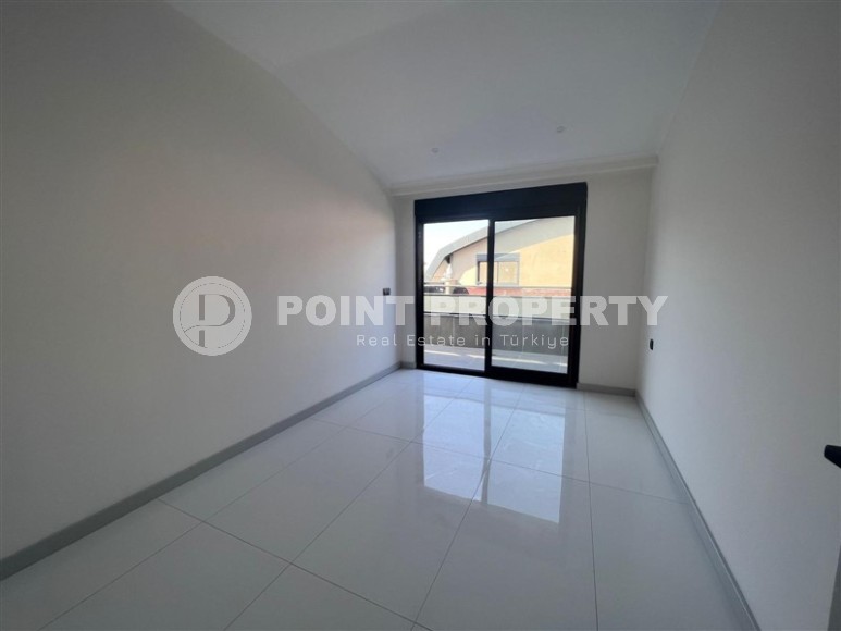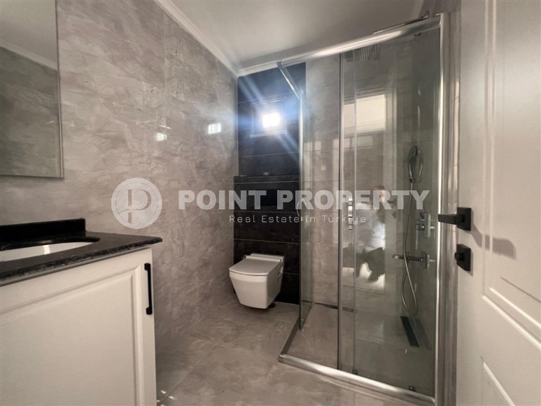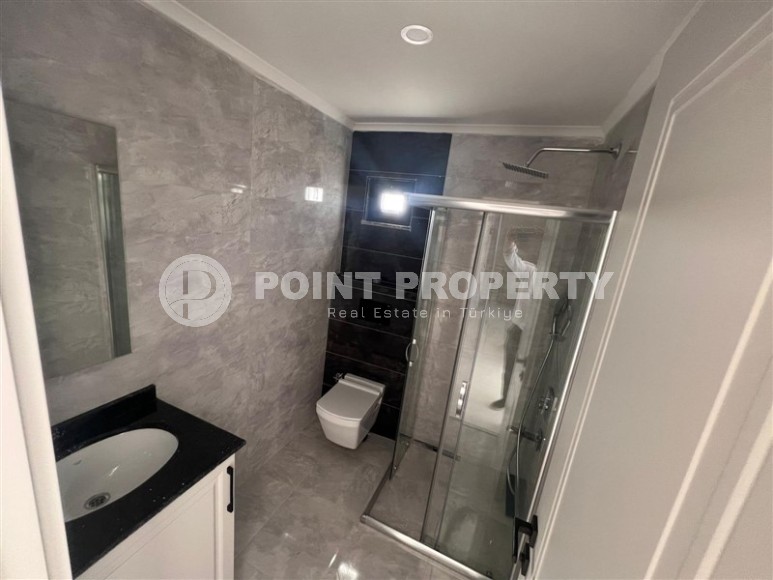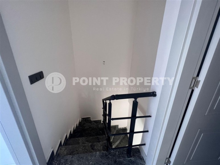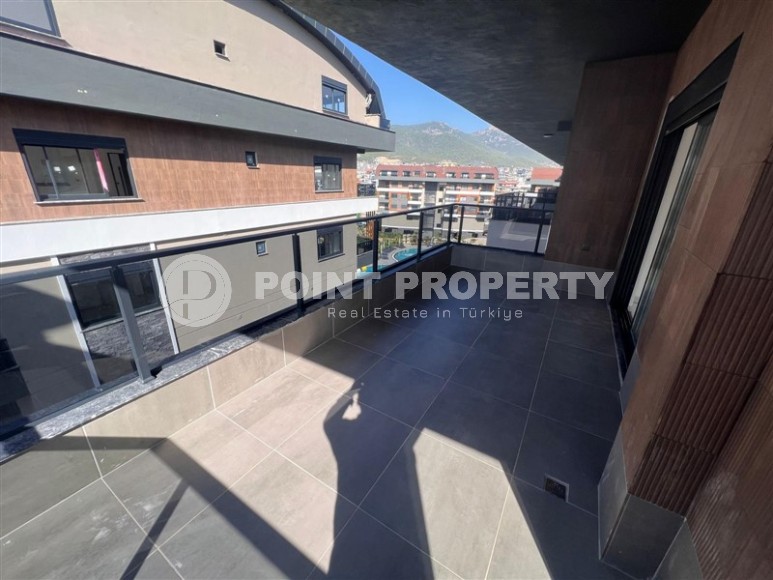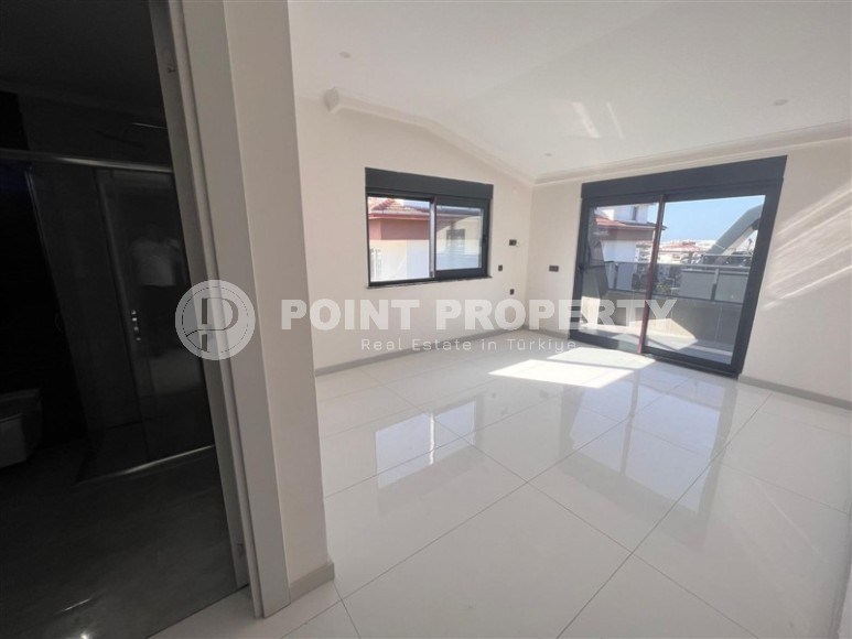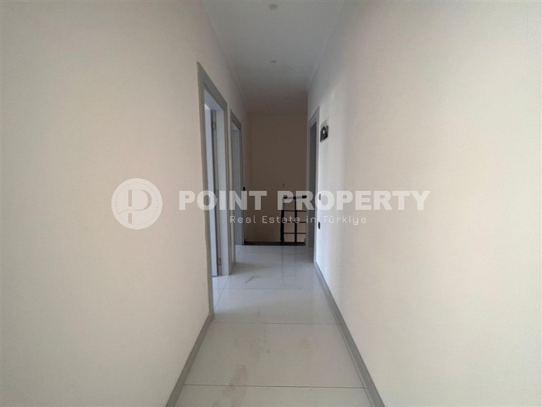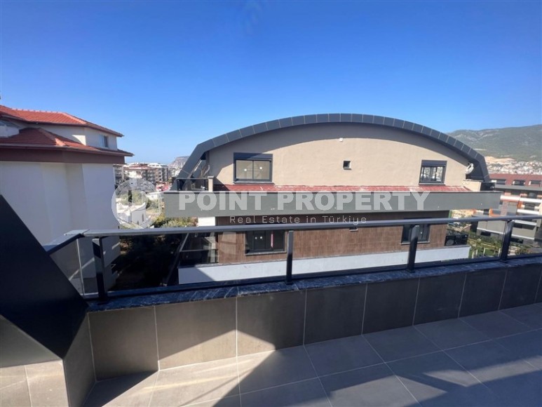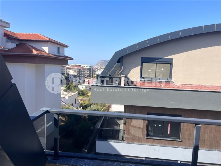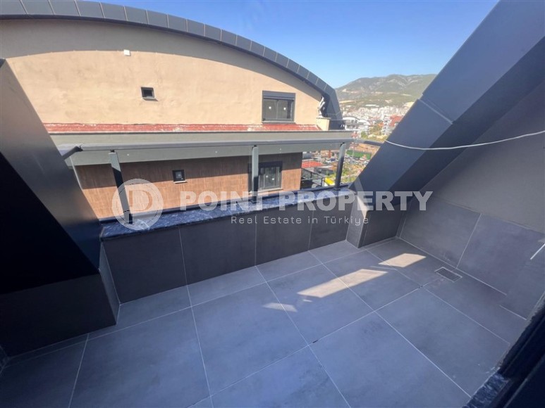 Dream of a comfortable new apartment on the Mediterranean coast of Turkey, but do not have the opportunity or desire to meet the deadlines set by developers? If so, then you will probably be interested to know that in the popular area of Alanya - Oba, a new residential complex is being put into operation at the end of October 2023, and in one of its buildings a spacious two-level apartment is for sale. It is located on the 4th floor with an attic and has a total area of 165 m2, on which there is an open kitchen combined with a living room, three bedrooms, three bathrooms, two balconies and an open roof terrace. All finishing work has already been completed in the apartment, suspended ceilings, ceramic flooring, entrance and interior doors, kitchen units and plumbing have been installed. The new owners will only have to bring their design ideas to life, and our professional after-sales service department staff will help solve such everyday and organizational issues as ordering furniture and appliances, connecting communications or insuring the property.