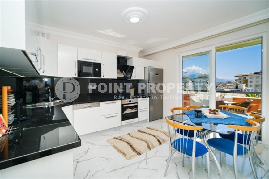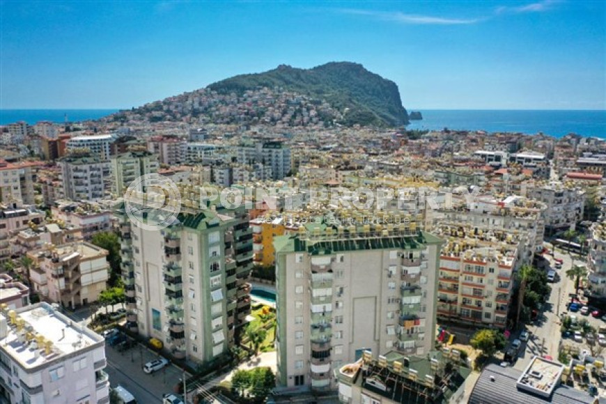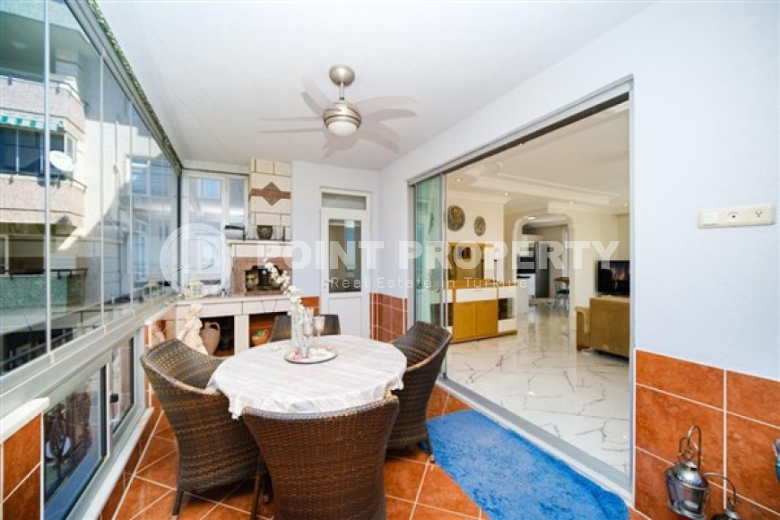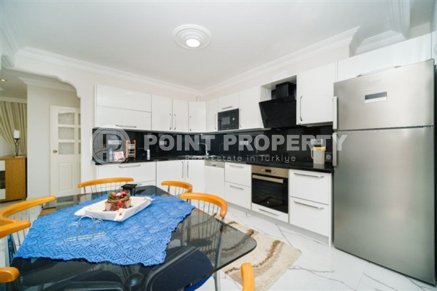 Elegant four-room apartment 145 m2 with furniture 250 meters from the city center, Alanya