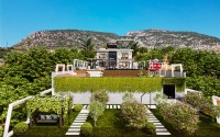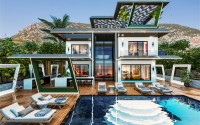 The villa is located on a plot of 1100 m2, consists of two floors with an attic, and has a total area of 350 m2, on which there are: an open-type American kitchen combined with a living room, five bedrooms, five bathrooms, balconies and a large outdoor terrace. On the 1st floor of the mansion, on an area of 125 m2, there will be a kitchen with a spacious living room, a guest bedroom and a full bathroom with a shower. On the 2nd floor there are planned four bedrooms, three bathrooms and balconies, and on the open terrace on the roof there will be a relaxation area with a kitchenette, bar, jacuzzi and shower. The ground floor of the mansion is reserved for a social area, where there will be a swimming pool, fitness room, sauna, hammam, steam room and games room with billiards. The project also includes a mini-cinema and a children's room. Since the villa is located on a hill, all windows offer picturesque panoramic views of the sea, city and mountains.