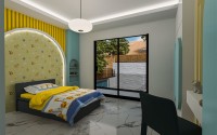 The villa is located two kilometers from the center of the Kestel district, with the main urban infrastructure, and two and a half kilometers from the beach, which is landscaped for a comfortable stay.