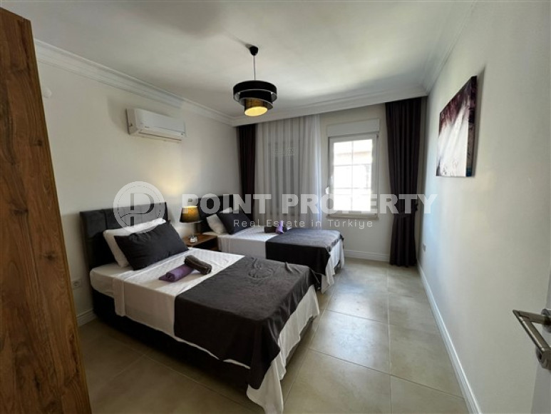 A duplex villa with a 3+1 room layout: three bedrooms, a living room with a kitchen, as well as two bathrooms, two balconies and a viewing terrace is striking in its volume and quality of construction. The villa, built in 2010, has two floors with an additional exit to the roof and is sold excluding furniture sets that the owner wished to keep at his disposal. However, you should not be upset about this. In the shortest possible time, our company’s after-sales service workers will help you equip your home with everything you need: furniture, household appliances and other interior items. The total area of the four-room villa is 200 m2 and is located 1500 meters from the magnificent beaches and 2000 meters from the center of Incekum.