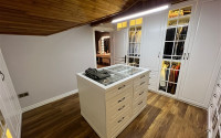 On the lower floor there is a spacious living room, a large separate kitchen with a spacious suite, two bedrooms, a bathroom equipped with high-quality sanitary ware and a guest bathroom without a shower. In the large hallway, which is almost impossible to find in modern complexes, there is a convenient staircase connecting the floors. The top floor is the private area of the apartment owners. There is a spacious bedroom, a very large comfortable dressing room, a bathroom with a full set of plumbing equipment and a large laundry room.