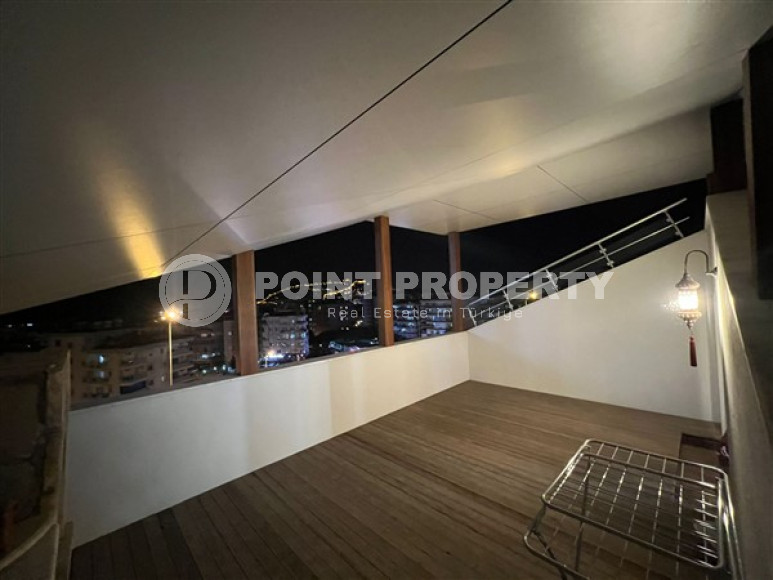 The lower floor of the penthouse has two spacious balconies, and the upper floor – terrace with a stationary barbecue. From the balconies and terraces there is a magnificent open view of the Mediterranean Sea, the Alanya fortress, especially beautiful with evening illumination.