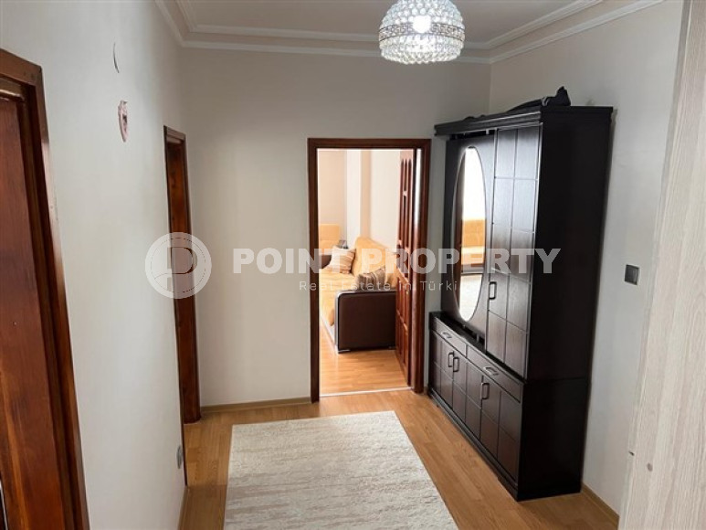 If you are looking for real estate on the Mediterranean coast of Alanya, you do not want to overpay for pretentious infrastructure, which you may not plan to use, and do not have a significant budget – take a look at this object in our portfolio. An apartment with a 3+1 layout, located on the 1st floor (in fact, on the second, above a commercial premises) in an urban building, which was commissioned in 1997, is for sale. The apartment, with an area of 110 m², has a living room, a separate kitchen with a spacious suite, three bedrooms, 1 bathroom and a guest bathroom without a shower, equipped with furniture and plumbing. The apartment has a good sized hallway, which is almost impossible to find in modern buildings. The apartment has two balconies overlooking the city.