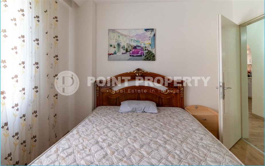 If, when choosing an apartment, the key search criteria for you are a location on the first line from the sea and in close proximity to all necessary urban infrastructure, and an affordable price, this ad will certainly interest you . A comfortable furnished apartment is for sale, located on the 2nd floor in a building built in 2003, on the very seashore, in the center of Mahmutlar. Apartment 2+1, with a total area of 95 m2, consists of a separate kitchen, living room, two bedrooms, one bathroom, and one open balcony overlooking the green garden and swimming pool. The apartment is bright and cozy, with warm colors and wood in the interior. The living room has a comfortable seating area, with massive sofas, armchairs, a coffee table and a side table; closer to the kitchen there is a compact dining table; the bedrooms have comfortable beds, a chest of drawers and a spacious wardrobe, as well as a suite with functional shelves and sections for storing things. . The spacious, bright kitchen is equipped with a washing machine, refrigerator and gas stove, so the apartment has everything you need for a comfortable stay.