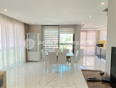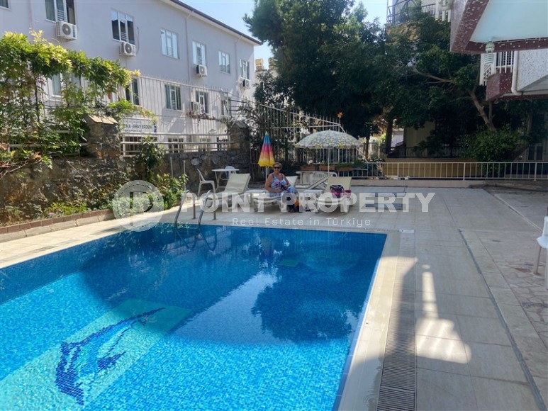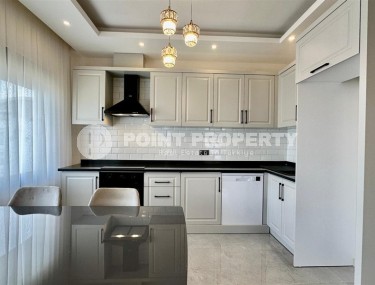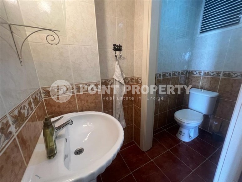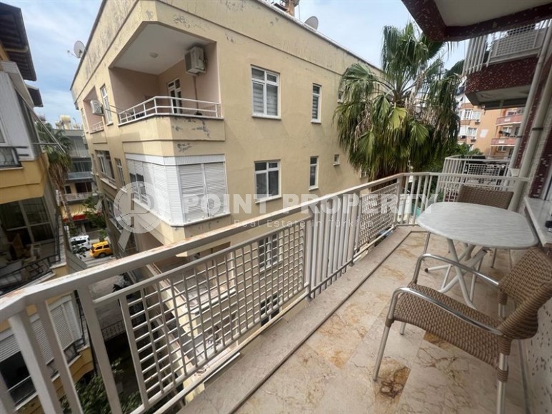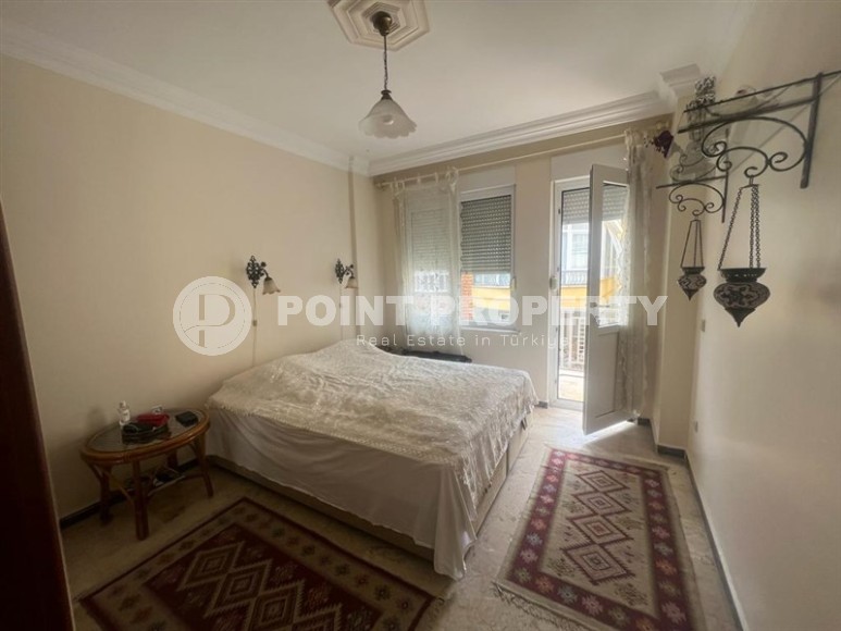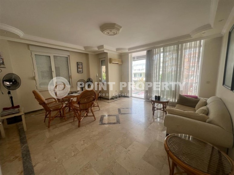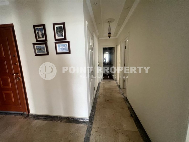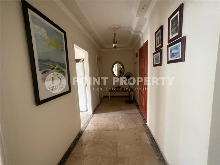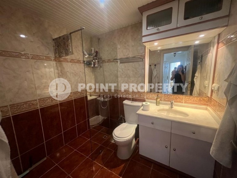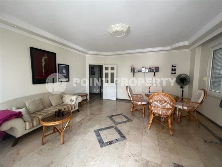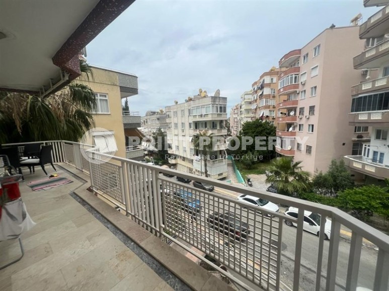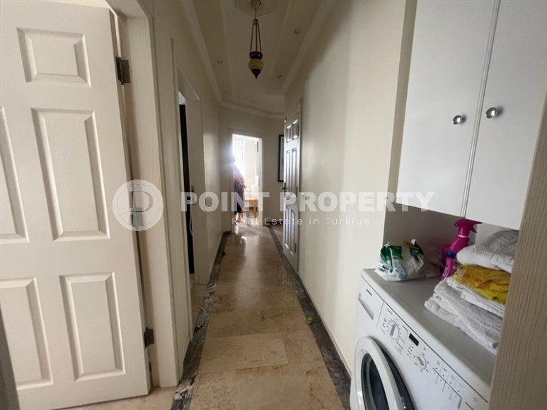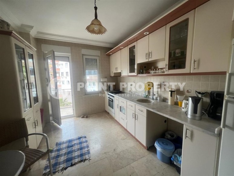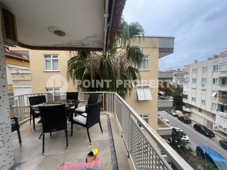 In this section we present to your attention a spacious apartment with an excellent location within walking distance from the famous Cleopatra Beach, in the very center of the popular Mediterranean resort of Alanya. It is located on the 2nd floor in a house built in 2007 and has a total area of 155 m2. The apartment layout includes a separate kitchen, living room, three bedrooms, two bathrooms, one of which is equipped with a shower, and two open balconies overlooking the city streets. The design of the apartment is simple and laconic, with warm light colors in the interior, traditional for Turkish apartments, elegant stucco on the ceilings, paintings in calm colors and unobtrusive decorative items. The spacious living room is equipped with a soft sofa, coffee tables and a round dining table with wicker chairs. The compact kitchen, with a sideboard and a small table, is equipped with a refrigerator, touch surface and oven. The bedrooms have comfortable beds and spacious wardrobes, and the balconies have cozy seating areas with practical garden furniture. In addition, at the entrance to the apartment there is a built-in wardrobe with a section for a washing machine, where a mini-laundry is equipped.