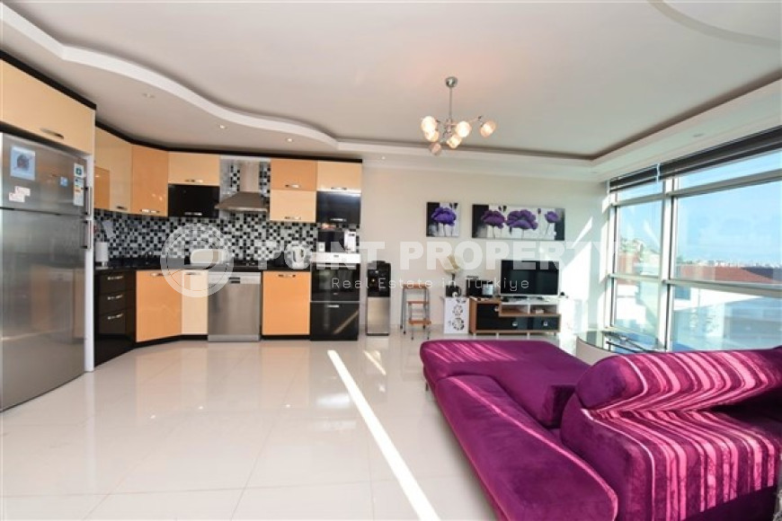 Furnished penthouse 2+1, 103m², with panoramic views of the Mediterranean Sea in the center of Alanya