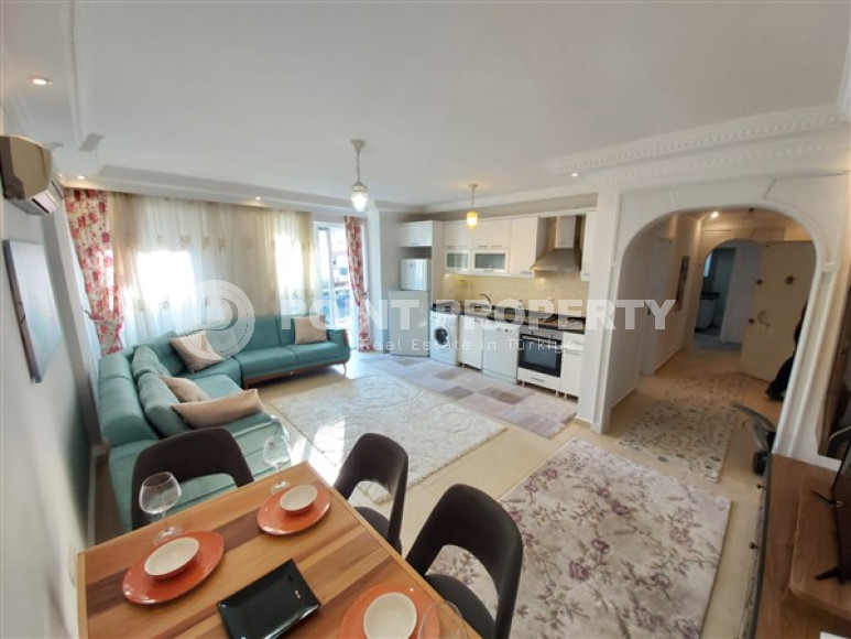 Furnished two-bedroom apartment 150 meters from the beach in the center of Alanya's popular Mahmutlar area.