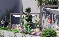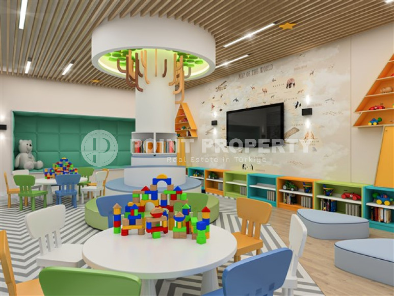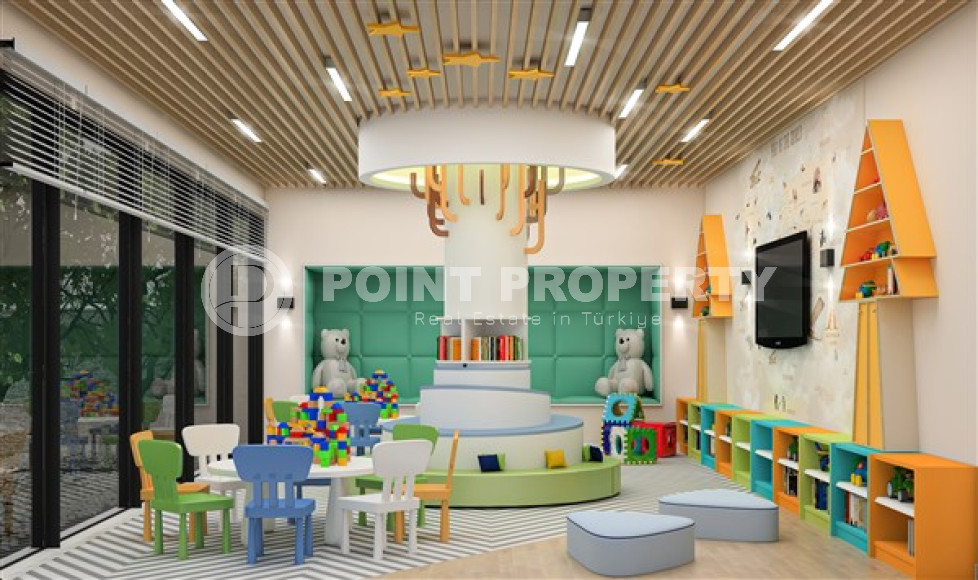 The residence occupies a large closed area on which a landscaped garden will be planted. The complex has extensive external and internal infrastructure that could be the envy of a five-star hotel. On the territory of the residence there is a summer outdoor swimming pool with water slides, a children's pool, an indoor and outdoor gym, car parking, a children's playground, gazebos with a barbecue area in the landscaped garden, a tennis court with a basketball court. The internal infrastructure will also not disappoint: a stunning SPA center, a cozy cinema hall, an elegant lobby and reception. A playroom and a kindergarten are provided for small residents. In addition, the residence will be guarded and under 24-hour video surveillance.