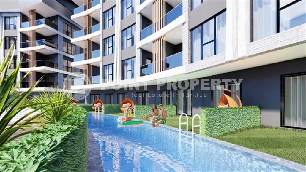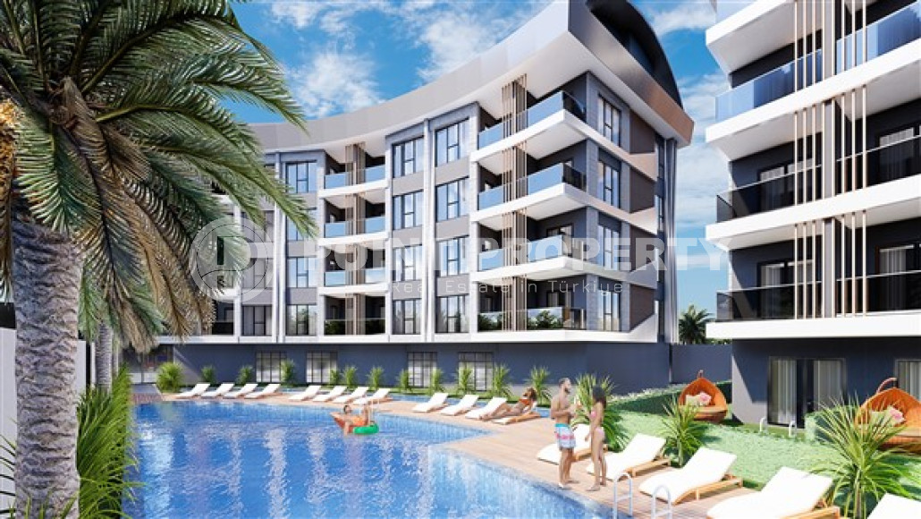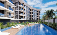Investment project with interesting layouts of 50-110 m² and apartments with a private pool, Konakli, Alanya