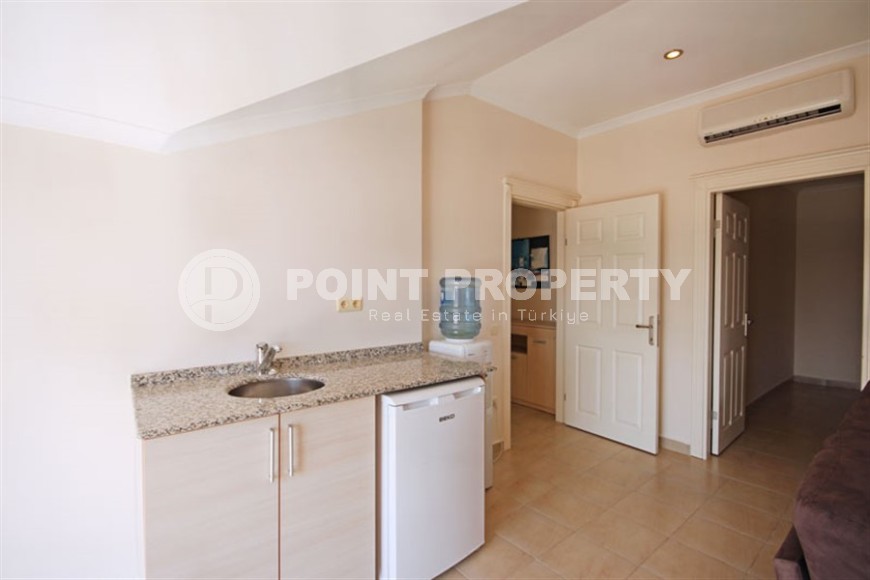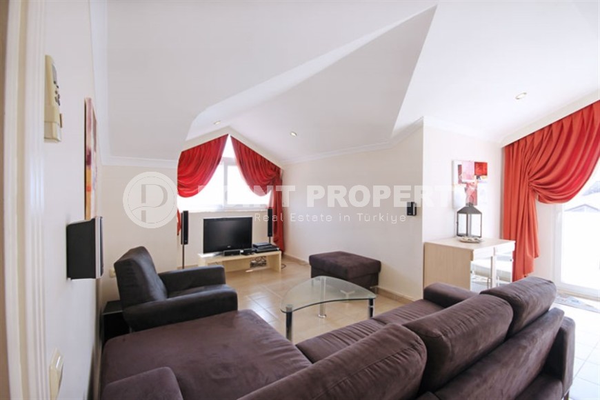 The apartment is located a ten-minute walk from the center of Alanya, where, along with the usual supermarkets, bakeries, cafes, restaurants, bank branches and public transport stops, there are modern fitness clubs, beauty salons, restaurants for every taste, children's educational institutions, private and public clinics. And 1200 meters from the apartment there is a luxurious beach, with golden sand, crystal clear water and a beautiful promenade, with flowering flower beds, palm trees, bicycle paths, children's and sports grounds.