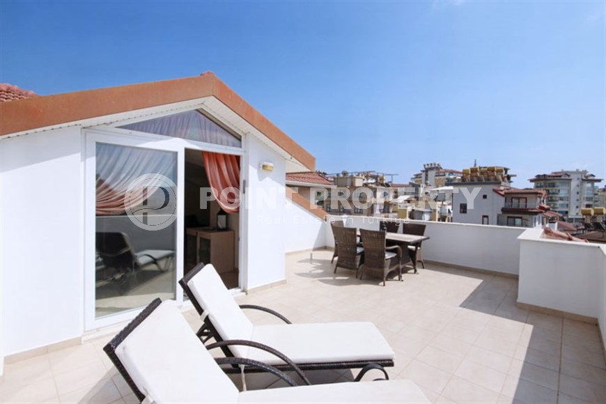 Duplex 3+1 with furniture, terrace and stunning sea view, 550 meters from the beach and 300 meters from the city center.