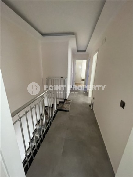 In the very center of the resort, in the well-maintained area of Güller Pinari, an apartment is for sale that is perfect for a large family. Spacious, with a total area of 210 m2, it is located on the 4th floor with an attic in a house built in 2021. The 3+1 planning solution is represented by a separate kitchen, living room, three bedrooms, three bathrooms, two balconies, one of which is glazed, and a panoramic outdoor terrace overlooking the city streets and mountain peaks. The design of the apartment is restrained and laconic, with warm shades in the interior and a minimum of bright accents. The living room, with light curtains in a classic style, is equipped with a massive corner sofa, an armchair, a coffee table, a side table and a dining table with soft chairs. The spacious kitchen is the dream of any housewife, equipped with a refrigerator, washing machine, dishwasher, gas stove and oven. The bedrooms have comfortable beds, bedside tables, dressing tables and spacious wardrobes, and under the stairs there are practical sections for storing household utensils. From the living room there is access to a panoramic glazed balcony, where an additional seating area with compact garden furniture is organized.