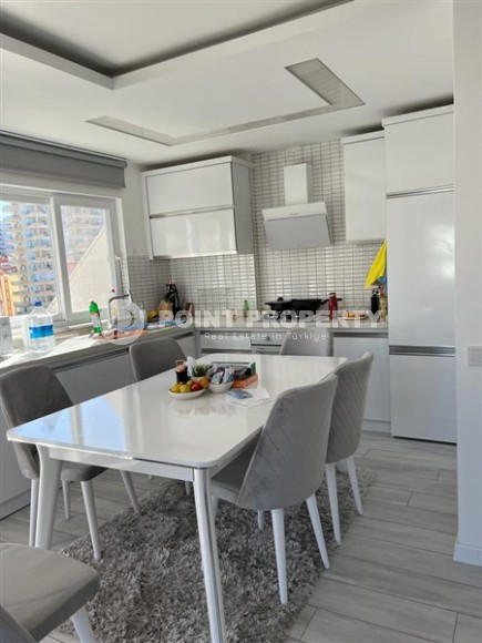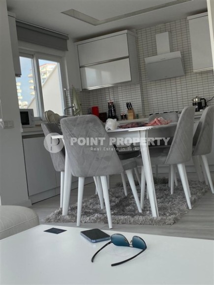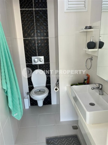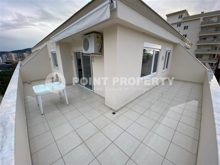 If you are looking for an affordable, comfortable apartment by the sea, this advertisement will certainly interest you, and the apartments presented here will definitely make a good impression on you. For sale is a spacious two-level apartment 2+1, with a total area of 150 m2, located on the 5th floor with an attic, a two-minute walk from the center of the popular, and comfortable all year round, area of Alanya - Mahmutlar. The apartment layout includes an open kitchen combined with a living room, two bedrooms, two bathrooms, a large open balcony and terrace overlooking the city streets. The design of the duplex is simple and laconic, with a predominance of white in the interior, which visually makes the rooms even more spacious and creates a feeling of lightness and cleanliness. The living room is equipped with a comfortable corner sofa, an original coffee table and a dining table. The practical kitchen corner is equipped with all necessary household appliances. The bedrooms have soft beds, bedside tables and dressing tables, and the balcony has a set of comfortable garden furniture. The apartment is completely ready to move in. The new owners will only have to give the apartment their own style and individuality with the help of bright accents, paintings or decorative items.