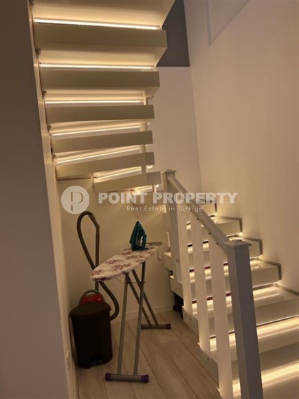 The house in which this apartment is located was built in 2014, and has a swimming pool, gym, sauna and parking on site. It is located a two-minute walk from the center of Mahmutlar, with supermarkets, clothing stores, bakeries, cafes, restaurants, beauty salons, bank branches, and public transport stops. And the distance from the duplex to the long sandy and pebble beach, and the picturesque promenade, with bicycle paths, children's and sports grounds, and comfortable recreation areas is only 450 meters.