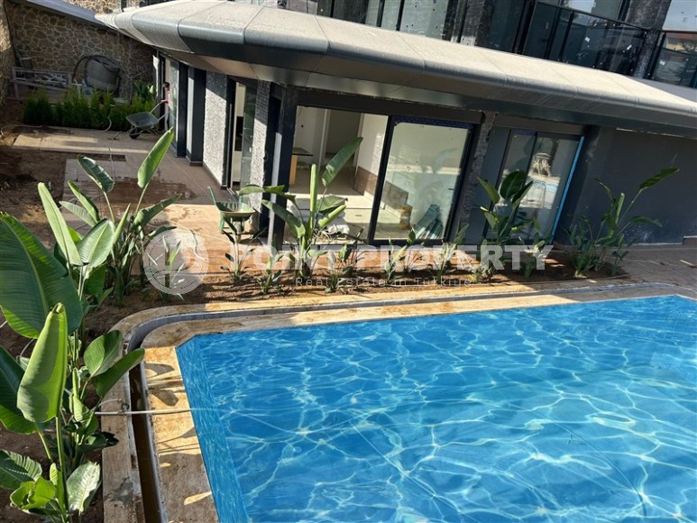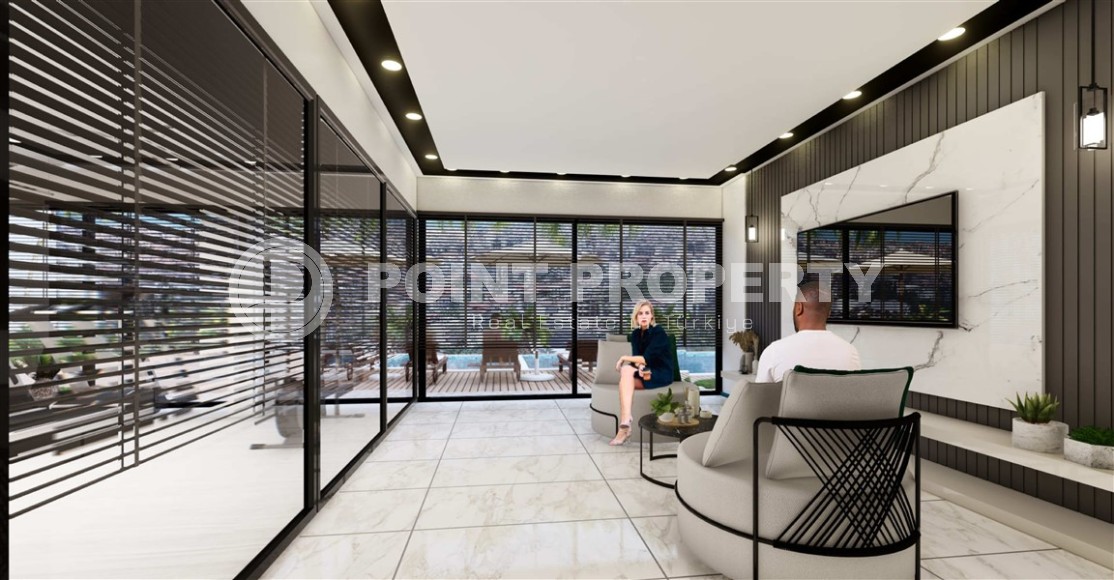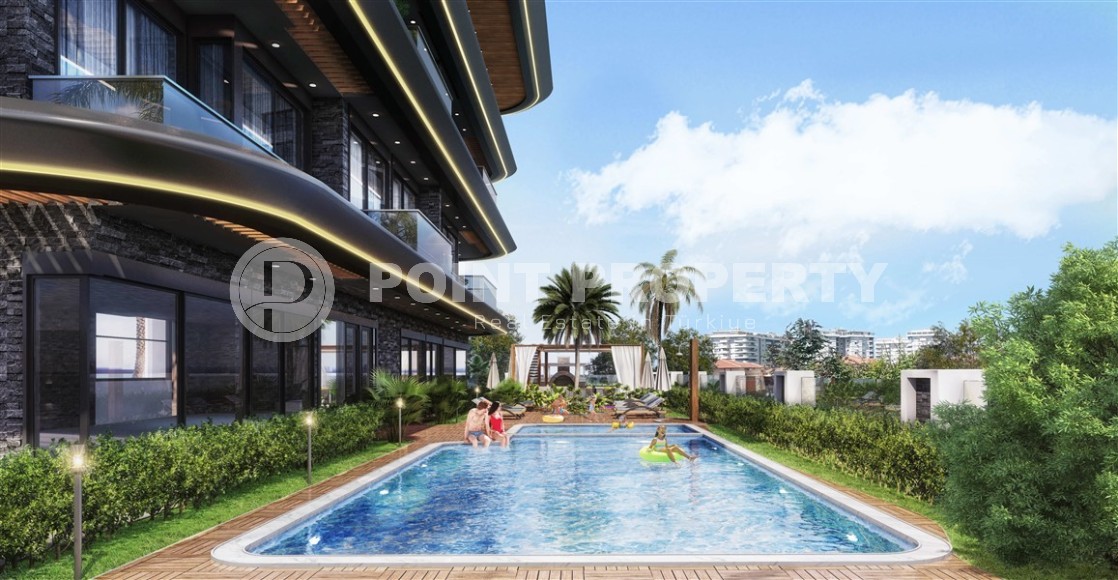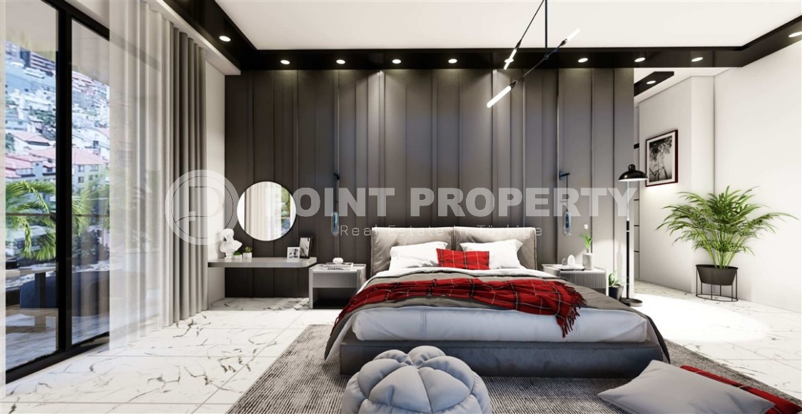 In the picturesque area of Alanya - Hasbahce, on a hill with stunning panoramic views of the sea and the ancient fortress, construction of a premium class boutique residence will be completed in August 2024, and you still have opportunity to purchase one of the available apartments. The following apartment options are available: