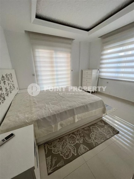We are pleased to present to your attention a comfortable, bright apartment located within walking distance from the center of Alanya and the famous Cleopatra Beach. Considering the 2+1 layout, which includes a living room combined with a kitchen, two bedrooms, two bathrooms and two balconies, as well as a large total area of 120 m2, the apartments are perfect for a family with children, can be used as a summer residence, or can be successfully rented out . The design of the apartment is consistent in style, and combines modern trends, such as ergonomics of space and division into functional zones, and Eastern trends, represented by relief textures and openwork patterns. The interior of the apartment is dominated by white color, creating a feeling of lightness, and elegant furniture, in a classic style, looks harmonious with the contrasting modern kitchen. The living room is equipped with a luxurious sofa and armchairs, with carved legs and gold elements, a cabinet selected in style, and a round dining table. The trendy kitchen corner is equipped with a built-in refrigerator, dishwasher and oven. The bedrooms have comfortable beds, furniture and spacious wardrobes, and the stylish bathrooms have showers and high-quality ceramics. The apartment is completely ready to move in, so the new owners only have to finalize the deal and prepare to move in.
