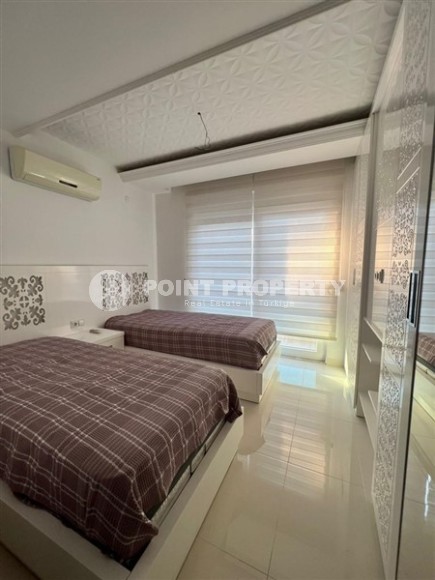 The residential complex, on the 2nd floor of which there are apartments, was built in 2015, and, like many modern residences, offers a number of additional services - an outdoor swimming pool with a water slide, an indoor swimming pool, fitness club, sauna, playground and small landscaped park. The apartment is located in a busy area, 700 meters from the center of Alanya, in close proximity to the main city infrastructure - shops, pharmacies, cafes, restaurants, beauty salons, bank branches and communications. And from the famous Cleopatra Beach, with golden sand, azure water, and a beautiful promenade, the apartments are only 350 meters away, which allows the new owners to enjoy the sea, sun and light resort atmosphere all year round.