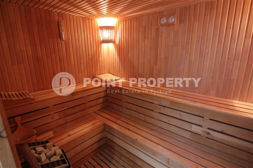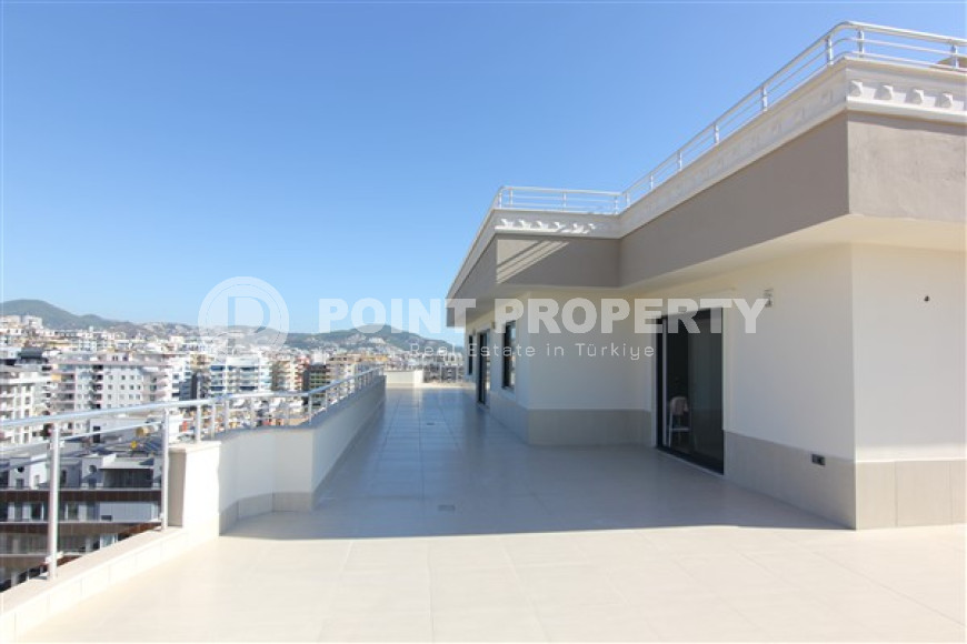 The penthouse is located in a building built in 2013 with an elevator, and there is already internal infrastructure – indoor and outdoor swimming pools, water park, fitness club, sauna, hammam. The territory of the complex is well-groomed and green, with its own parking, which is important for the center of the busy Mahmutlar district, because the distance to it is only 100 meters. The road to the beach takes a few minutes – The embankment is 400 meters away. Along the entire coast there are restaurants and nightclubs, beach complexes and souvenir shops, travel agencies and a variety of shops. The Mahmutlar area is popular among tourists both in summer and winter due to its mild climate, picturesque panoramas of the sea and mountains, fresh clean air and the charming atmosphere of the resort. That is why many travelers, when they get here, decide to deviate from the previously planned route and spend a year – two on the Mediterranean coast with hospitable Turkey.